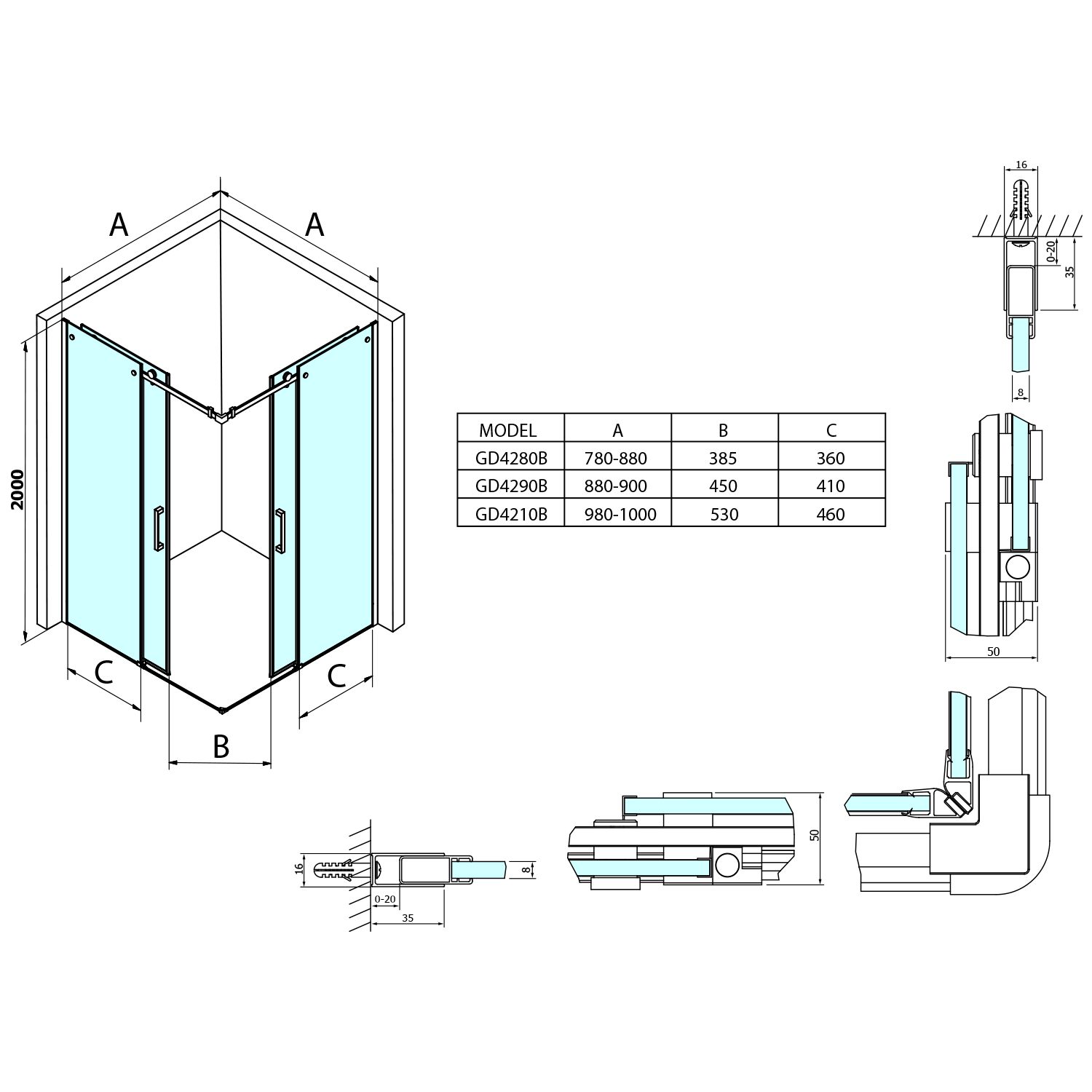 DRAGON BLACK sprchové posuvné dveře rohový vstup 1000mm, čiré sklo GD4210B