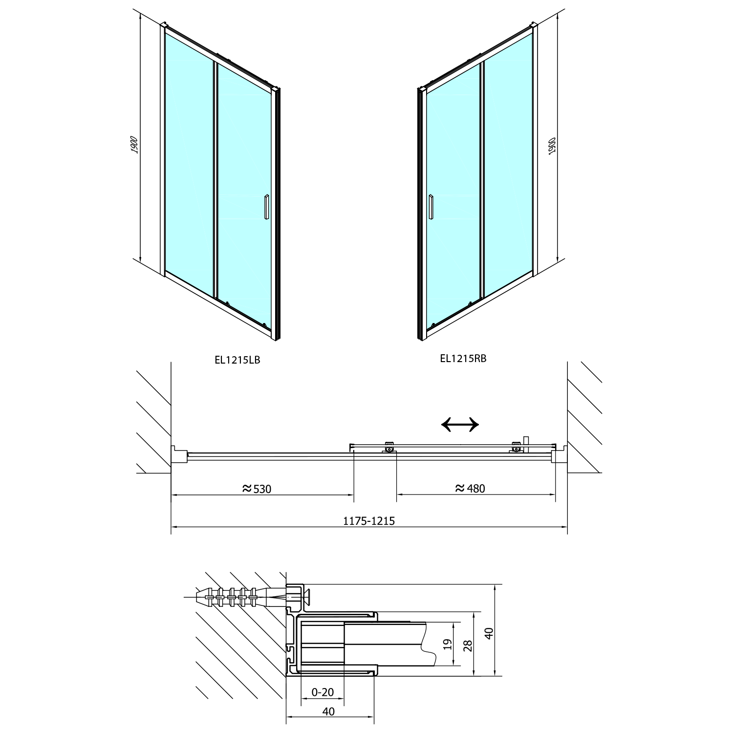 EASY BLACK boční stěna 800mm, čiré sklo EL3215B