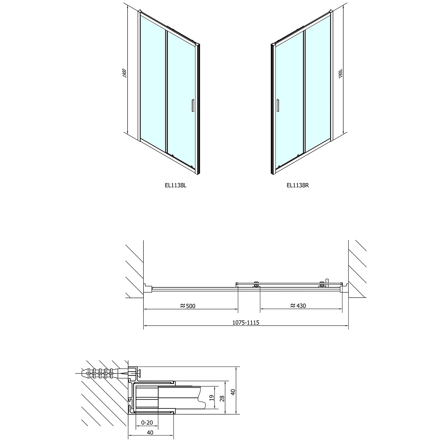 EASY boční stěna 1000mm, sklo BRICK EL3438