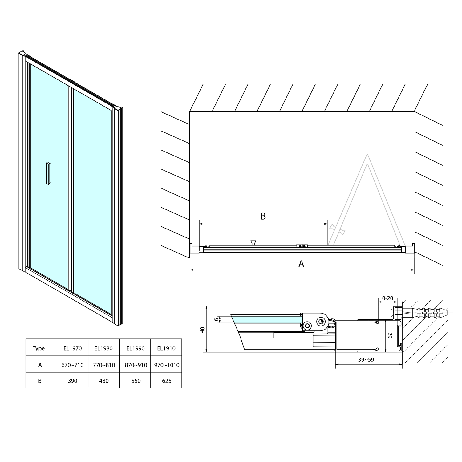 EASY boční stěna 900mm, čiré sklo EL3315