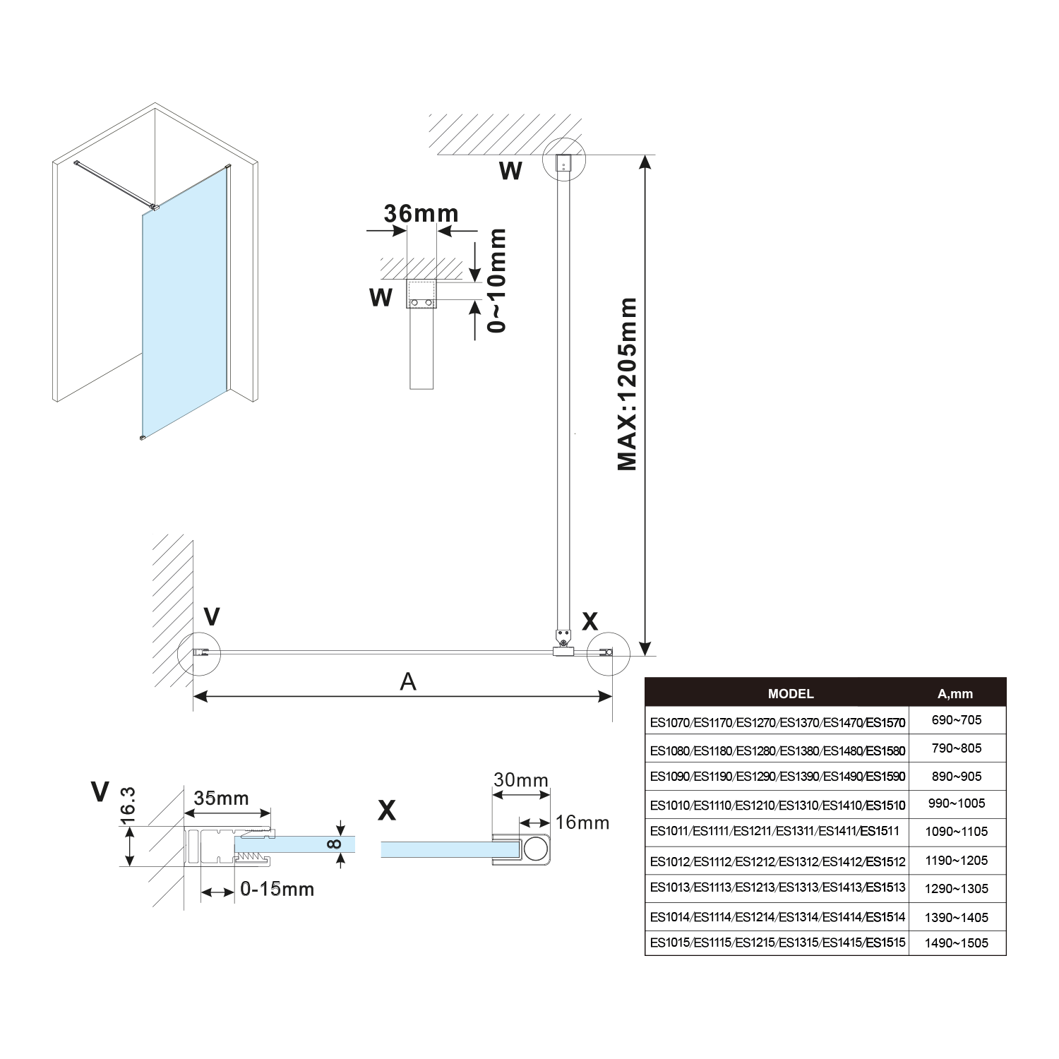 THOR stěrka do sprchy, chrom