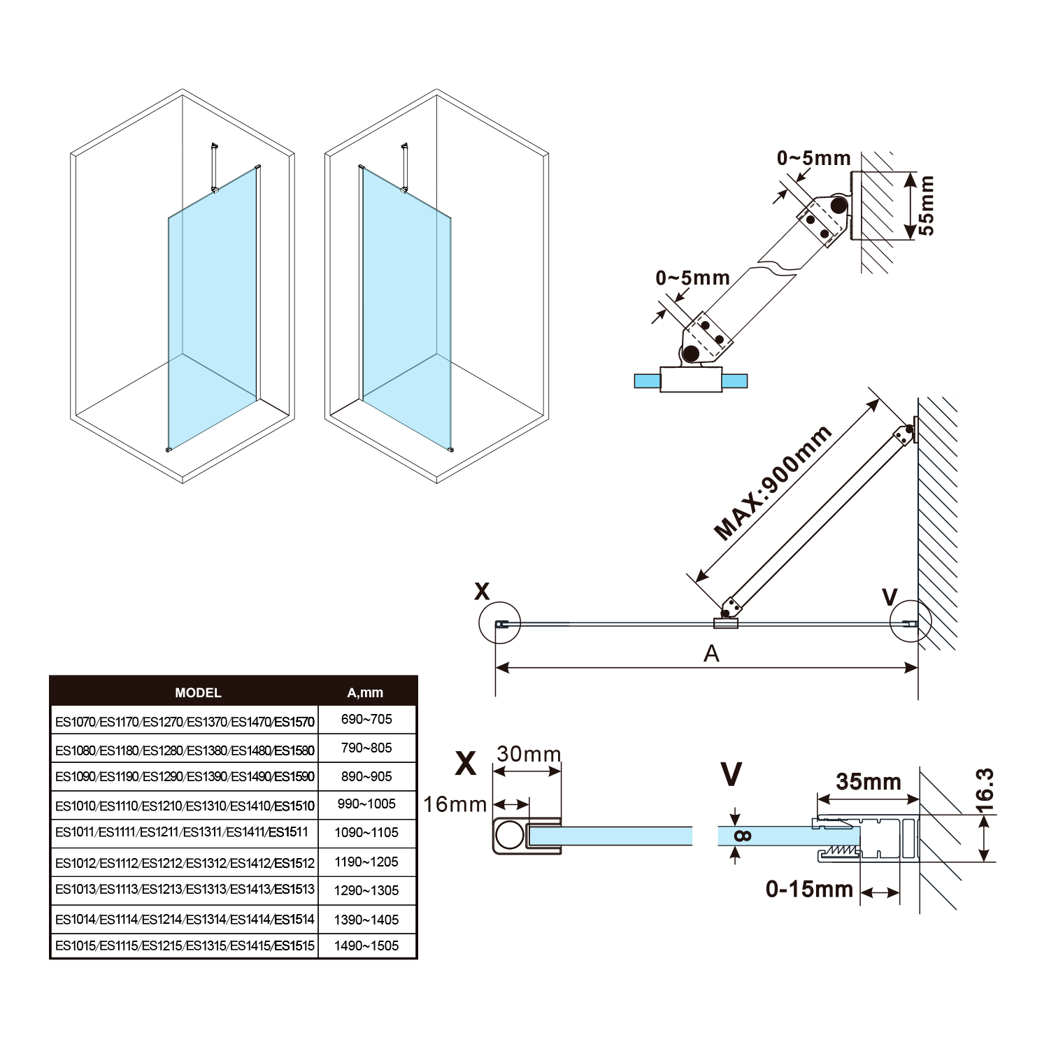 ESCA rohová vzpěra 900mm, chrom ES7810