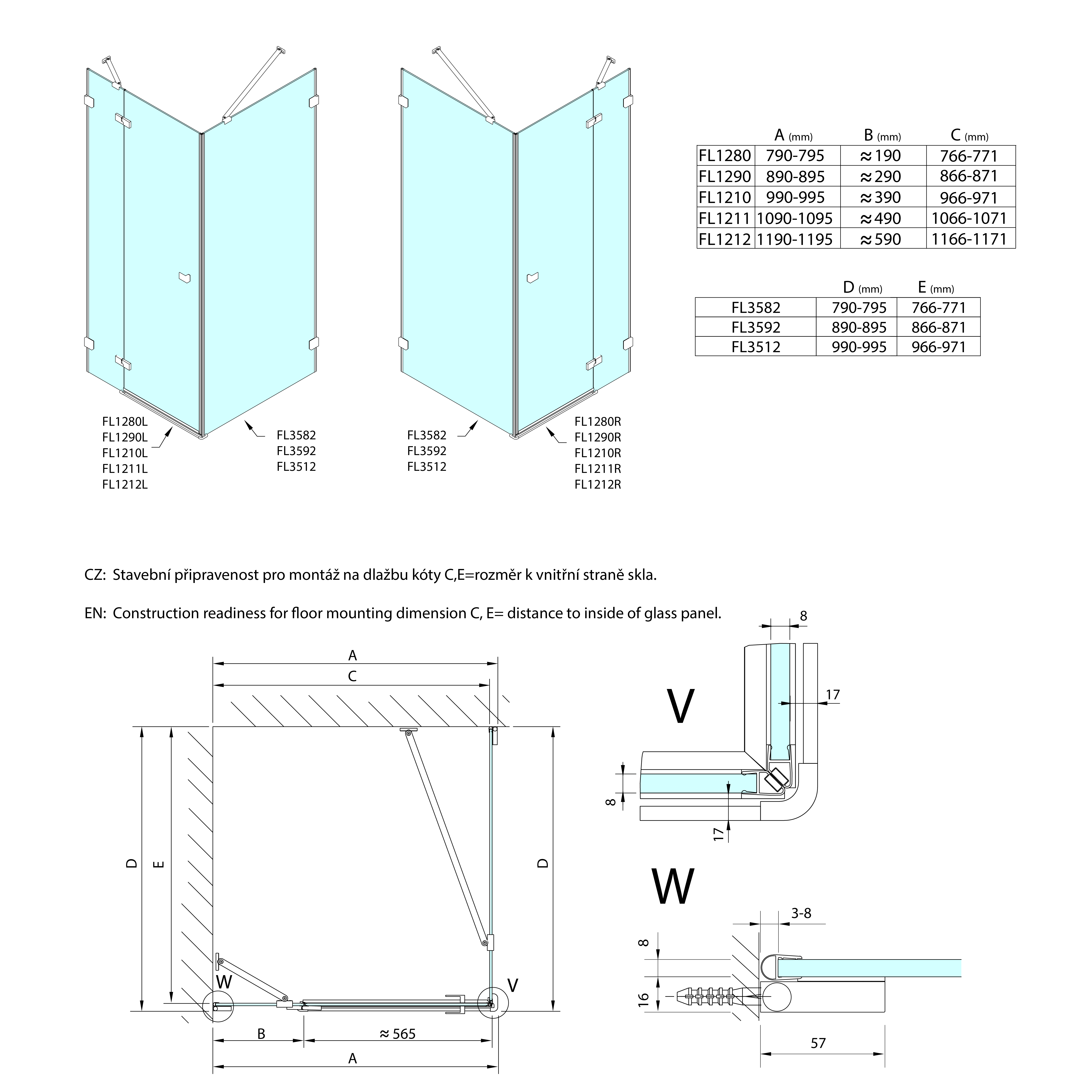 FORTIS EDGE boční stěna 800 mm, čiré sklo FL3582