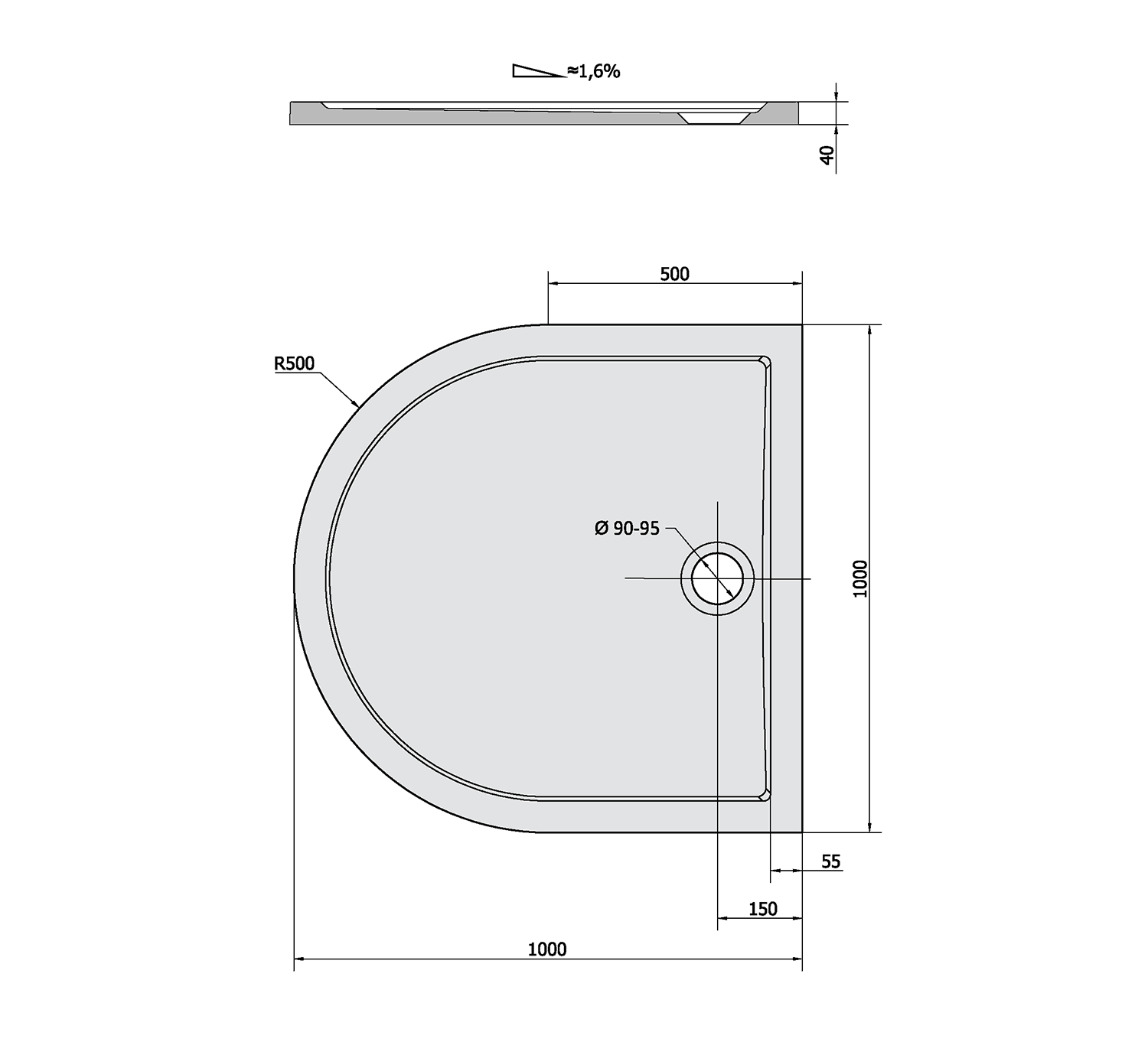 EASY půlkruhová sprchová zástěna 1000x1000mm EL4715