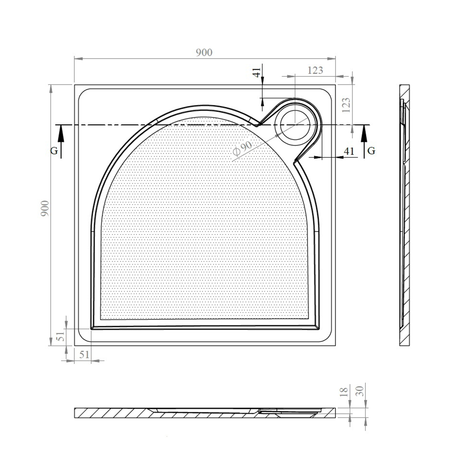 ANETA90 sprchová vanička z litého mramoru, čtverec 90x90cm, bílá GA009