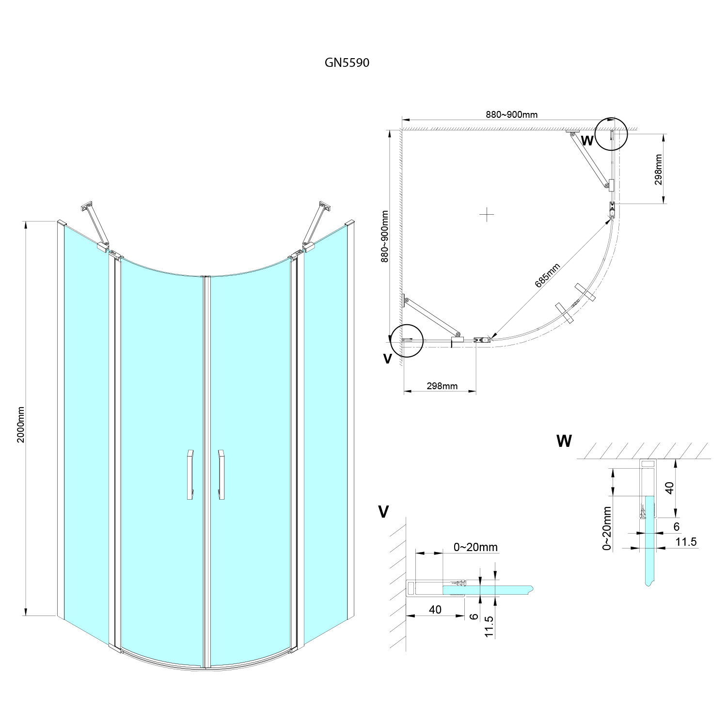 ARCA sprchová vanička z litého mramoru, čtvrtkruh 90x90cm, R550, bílá PA559