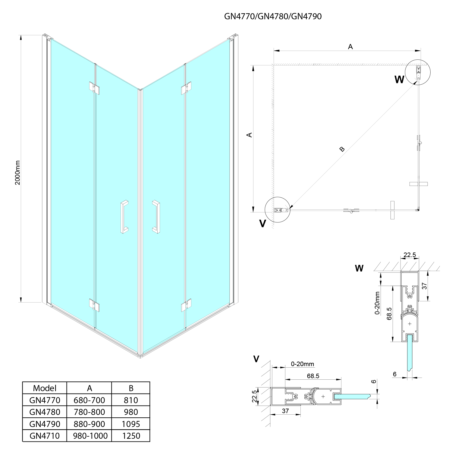 LORO sprchové dveře skládací pro rohový vstup 800mm, čiré sklo GN4780