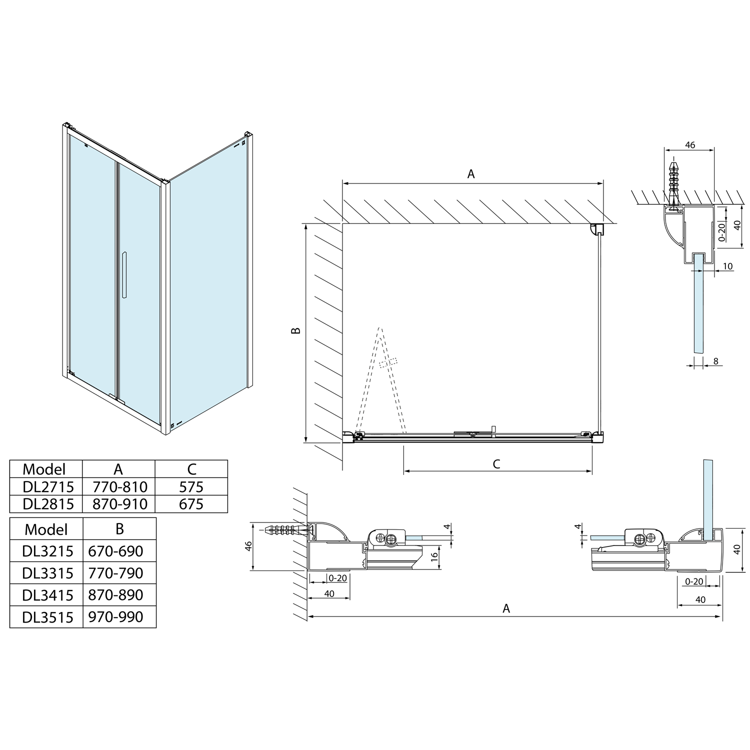 LUCIS LINE sprchová boční stěna 800mm, čiré sklo DL3315