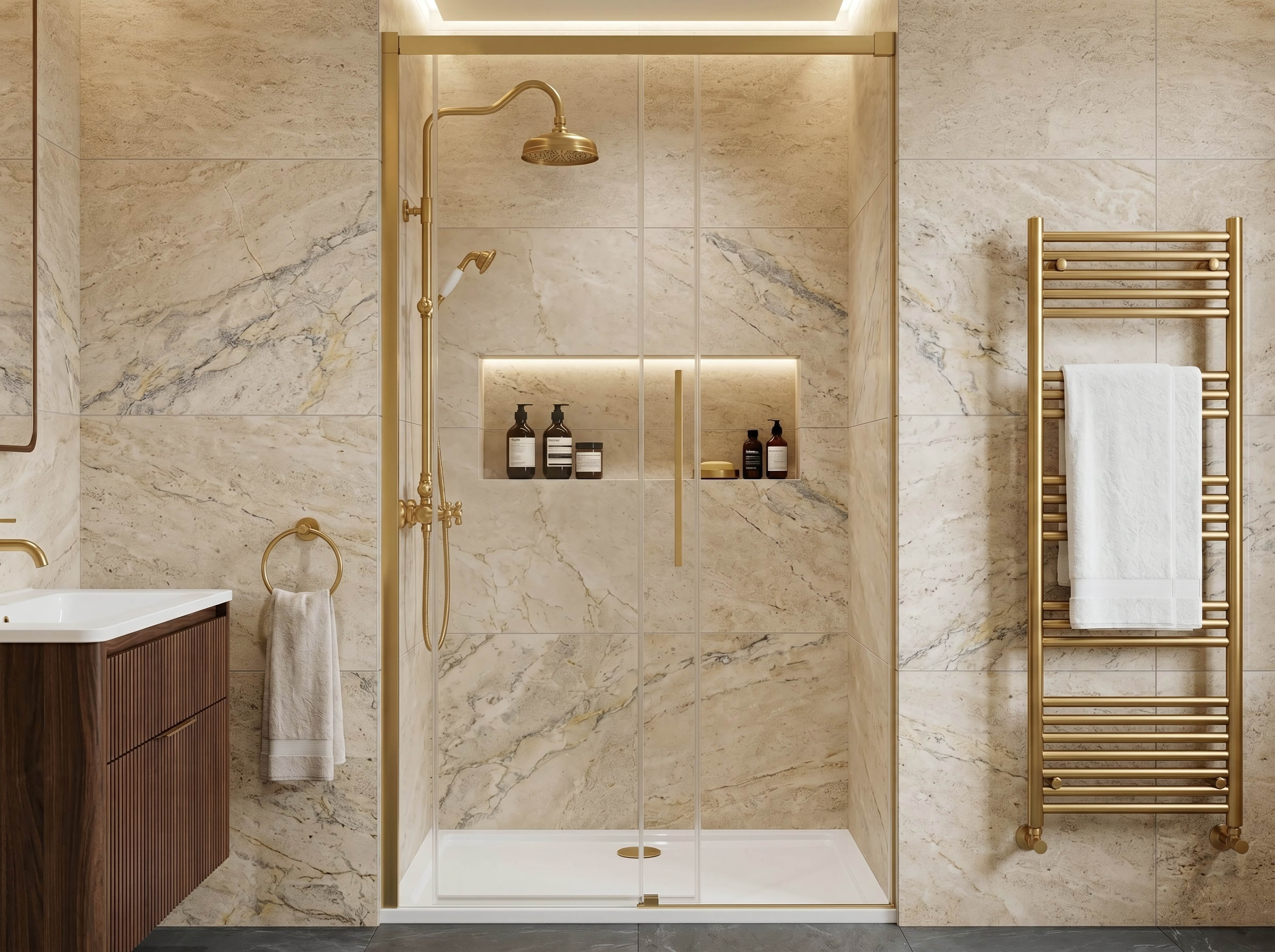 LUXOR GOLD MATT boční stěna 900mm, čiré sklo GU5690G