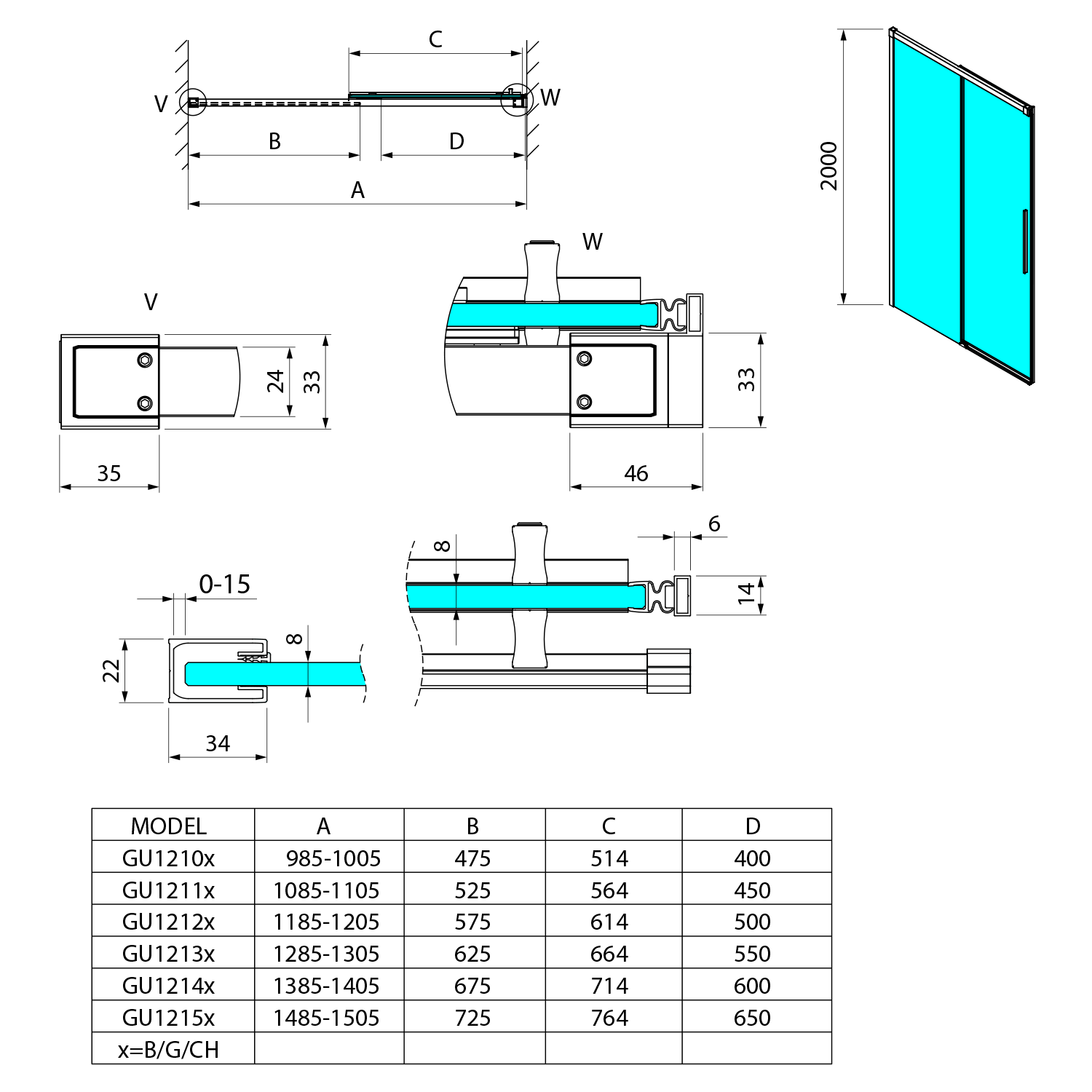 LUXOR GOLD MATT boční stěna 1000mm, čiré sklo GU5610G