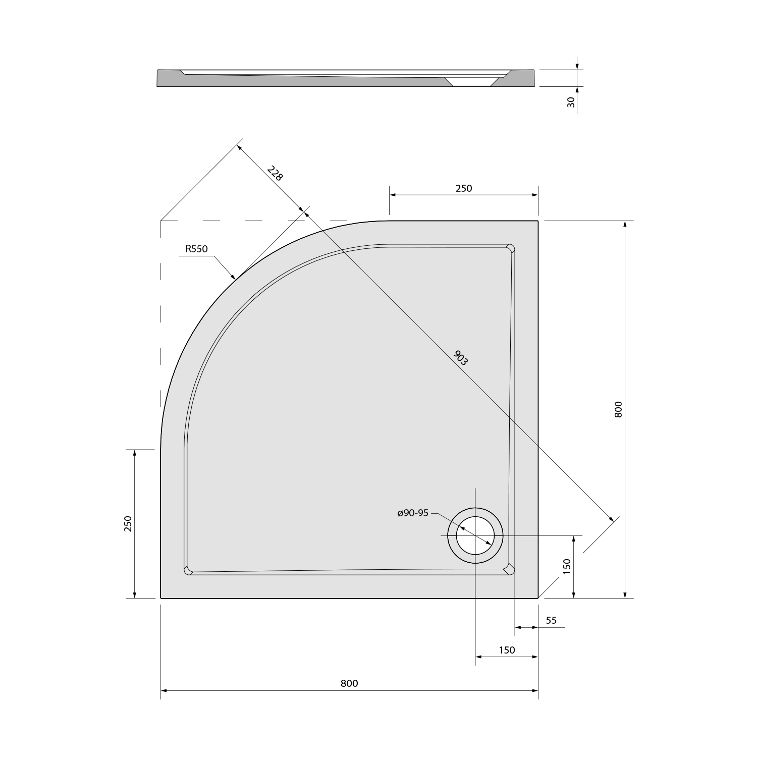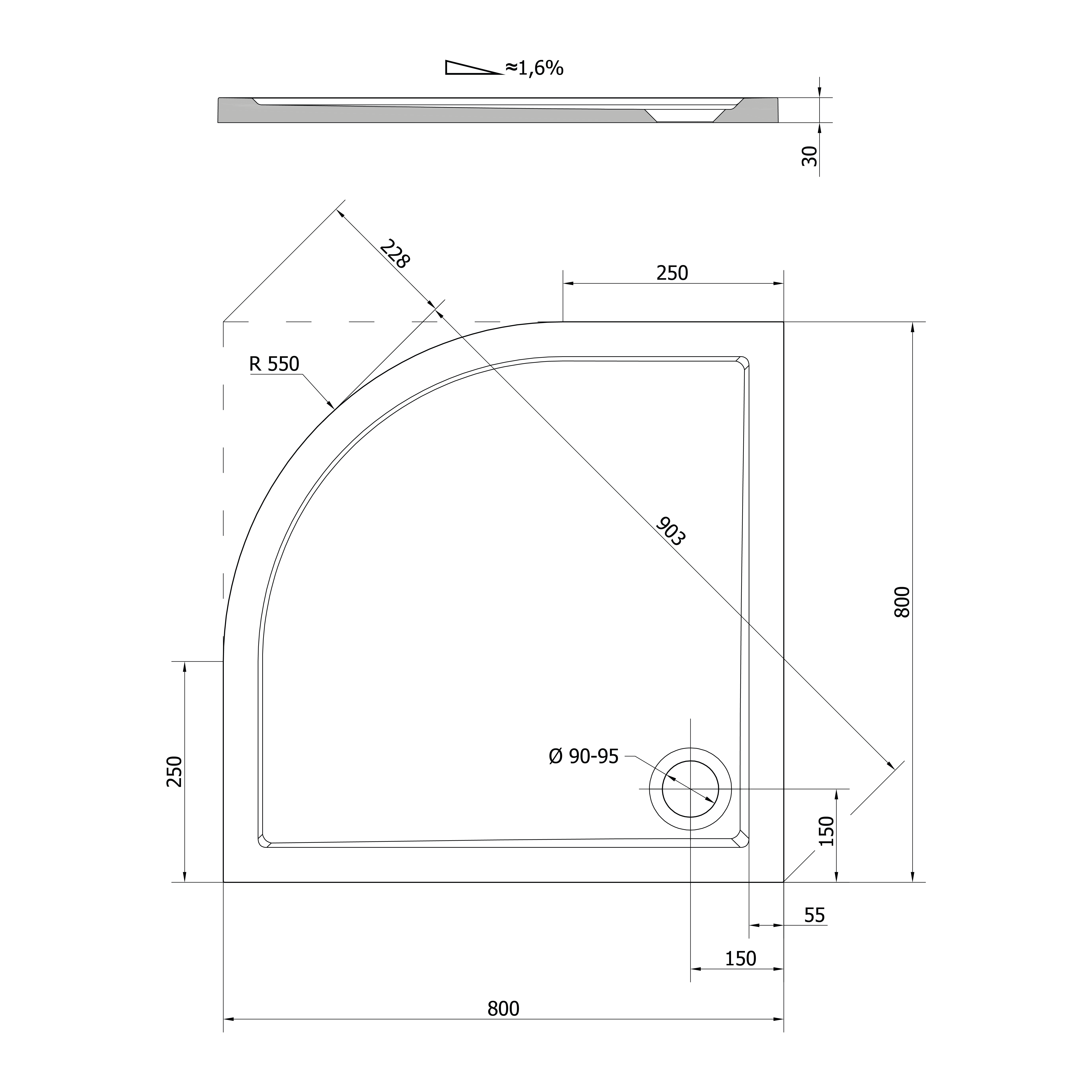 FLEXIA vanička z litého mramoru čtvrtkruh, s možností úpravy rozměru, 80x80cm, R550 91171