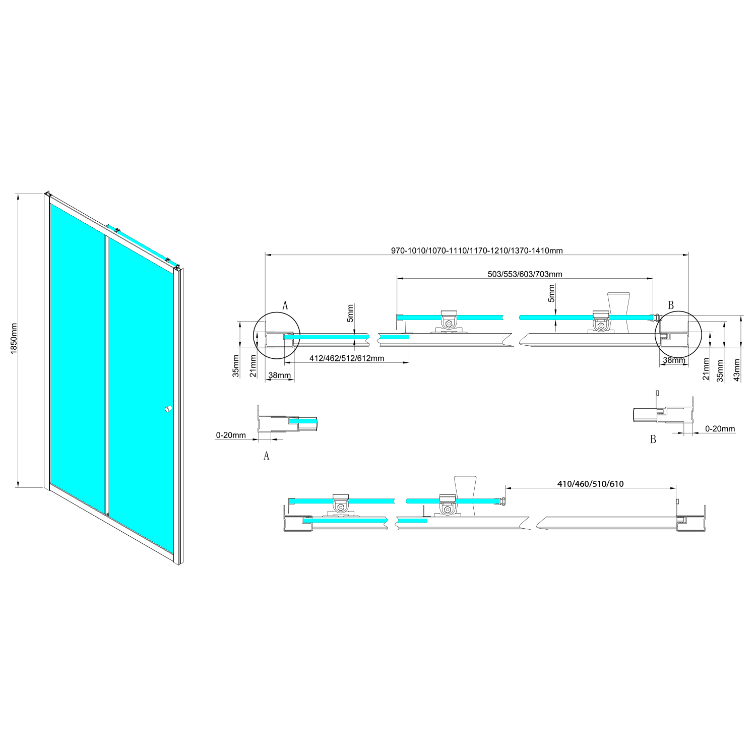 UGGA boční stěna, 900mm, sklo Brick, bílá AWP90