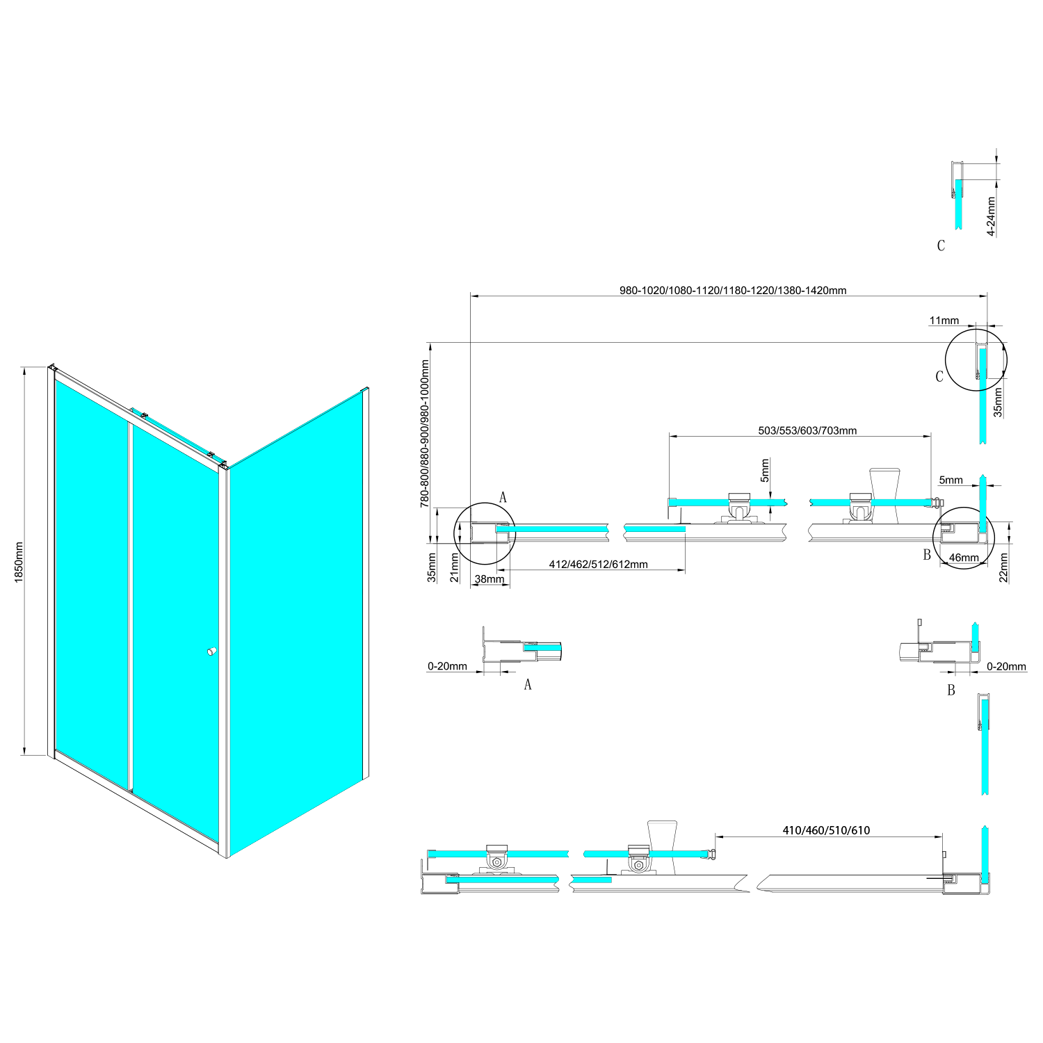 UGGA boční stěna, 800mm, sklo Brick, bílá AWP80