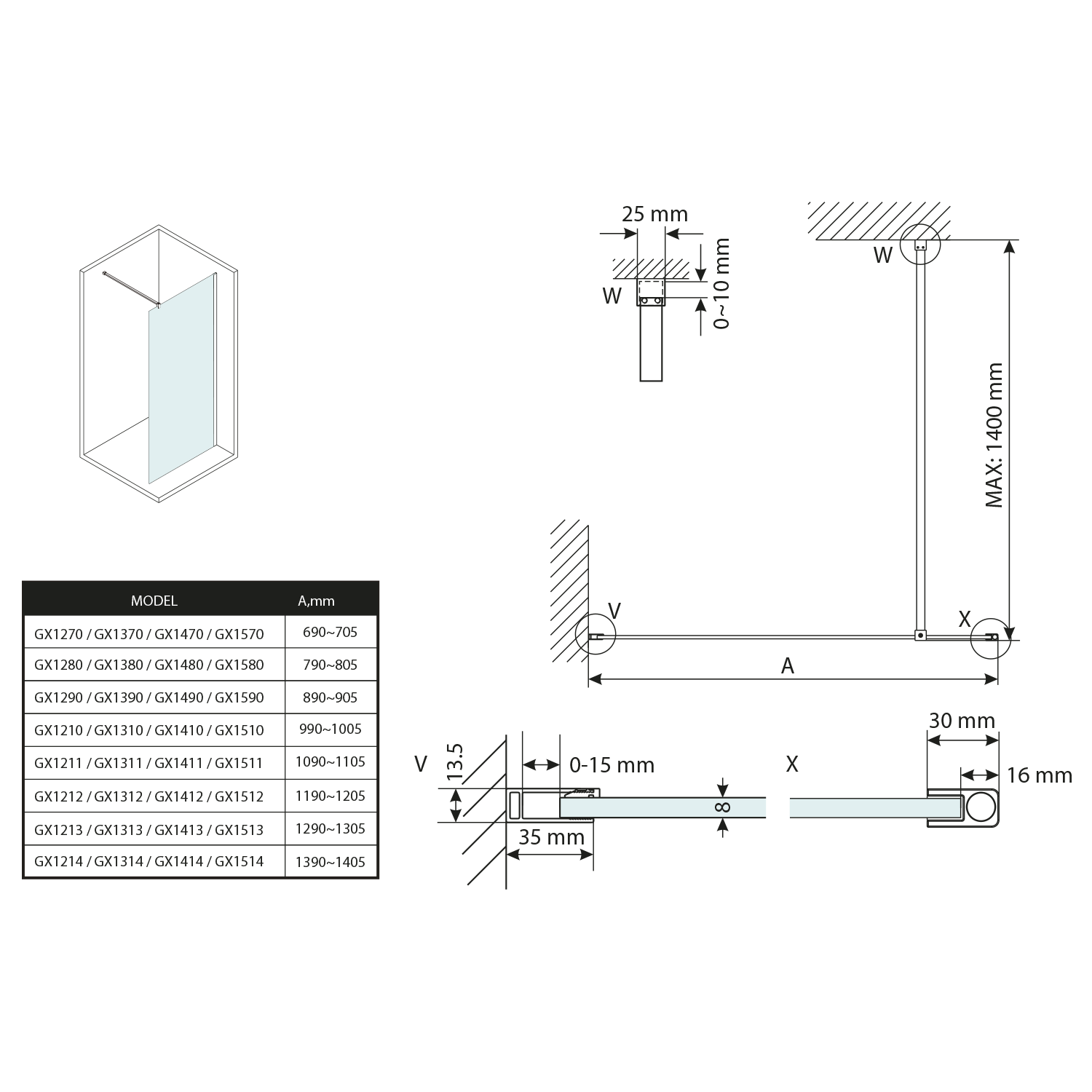 Balení obsahuje pouze sklo, stěnový profil a vzpěru je třeba objednat samostatně.