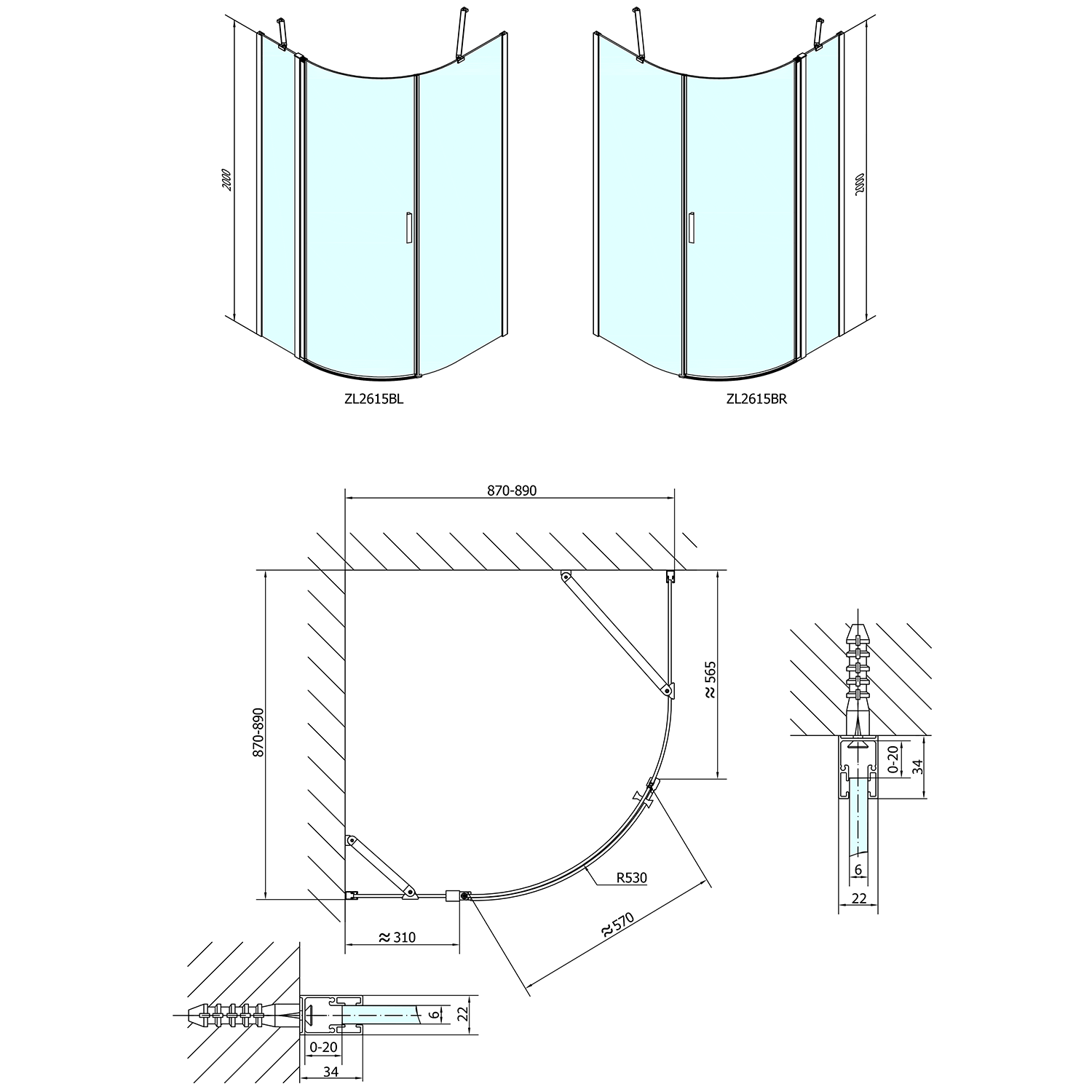 SERA sprchová vanička z litého mramoru, čtvrtkruh 90x90cm, R550, bílá 41511