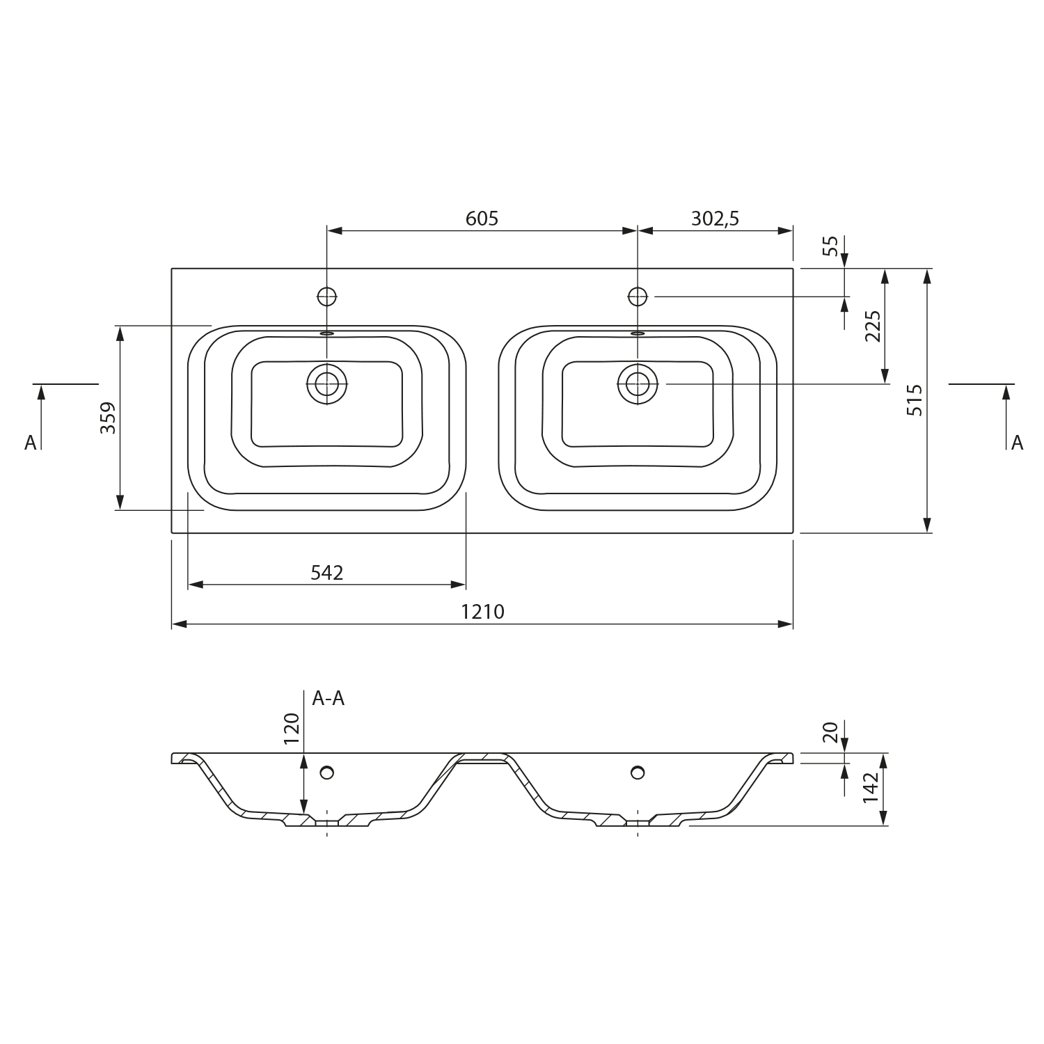 SKA konzole pod umyvadlo/desku 119,7x22x51cm, černá mat SKA820