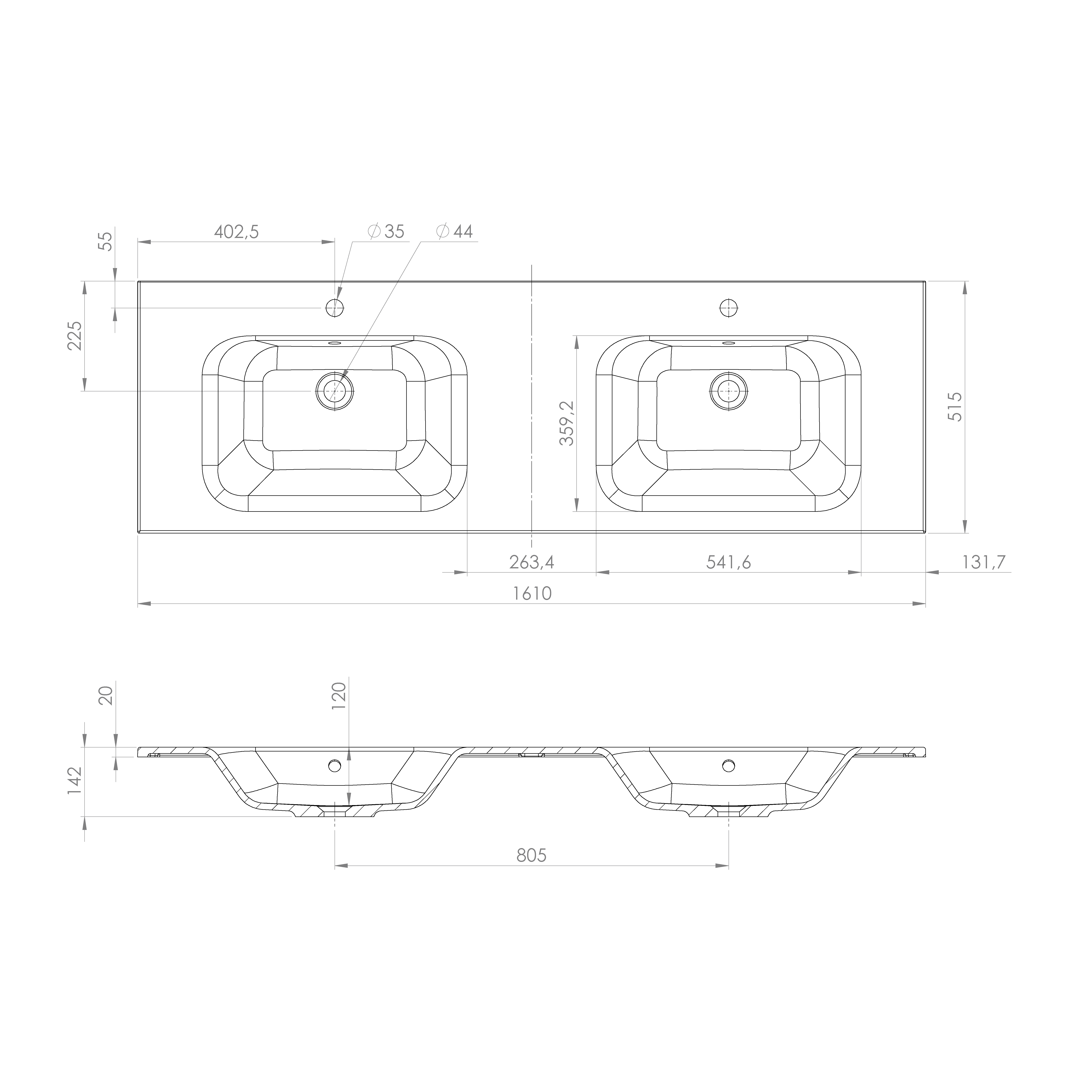 SKA konzole pod umyvadlo/desku 160x22x51cm, černá mat SKA860