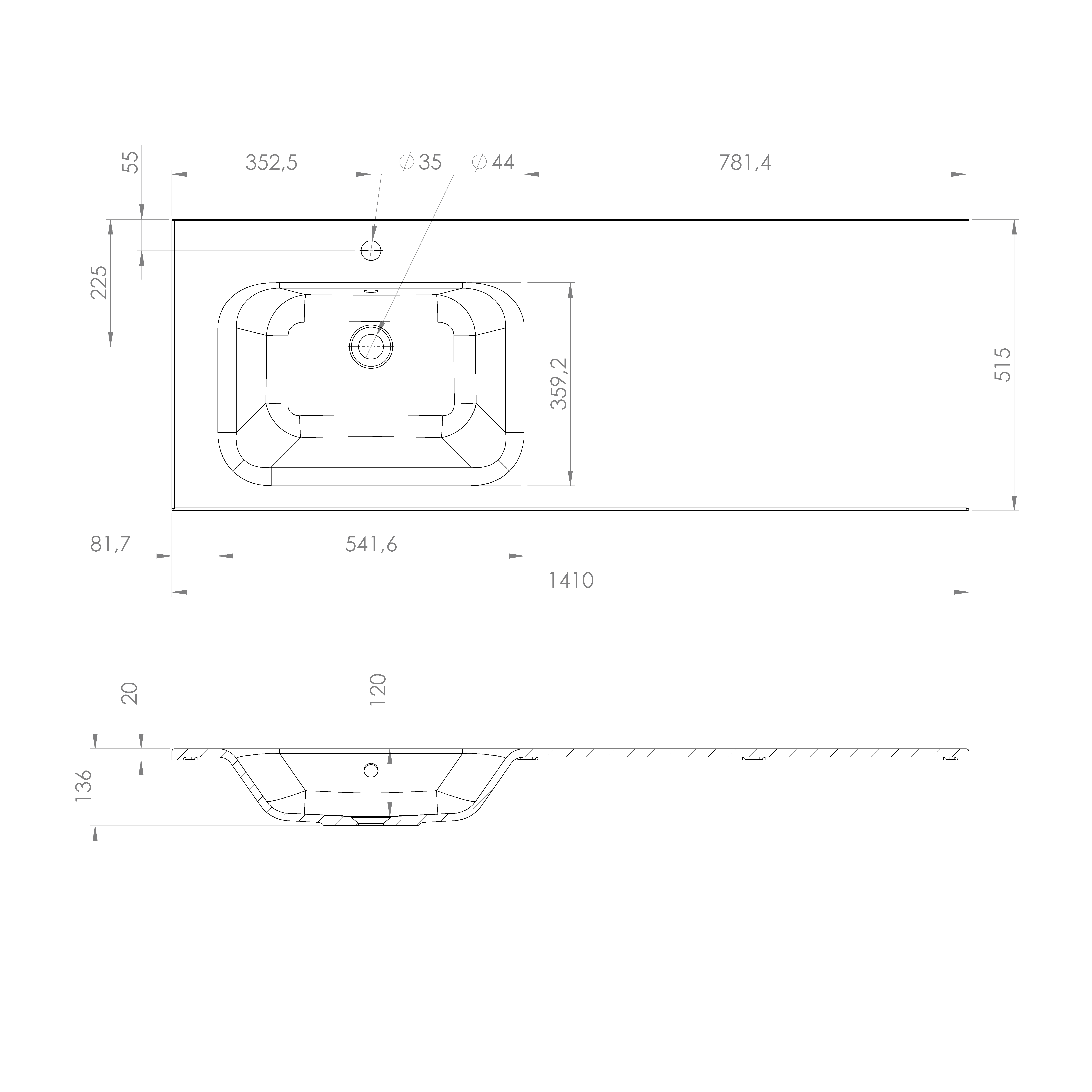 SKA konzole pod umyvadlo/desku 140x22x51cm, černá mat SKA840