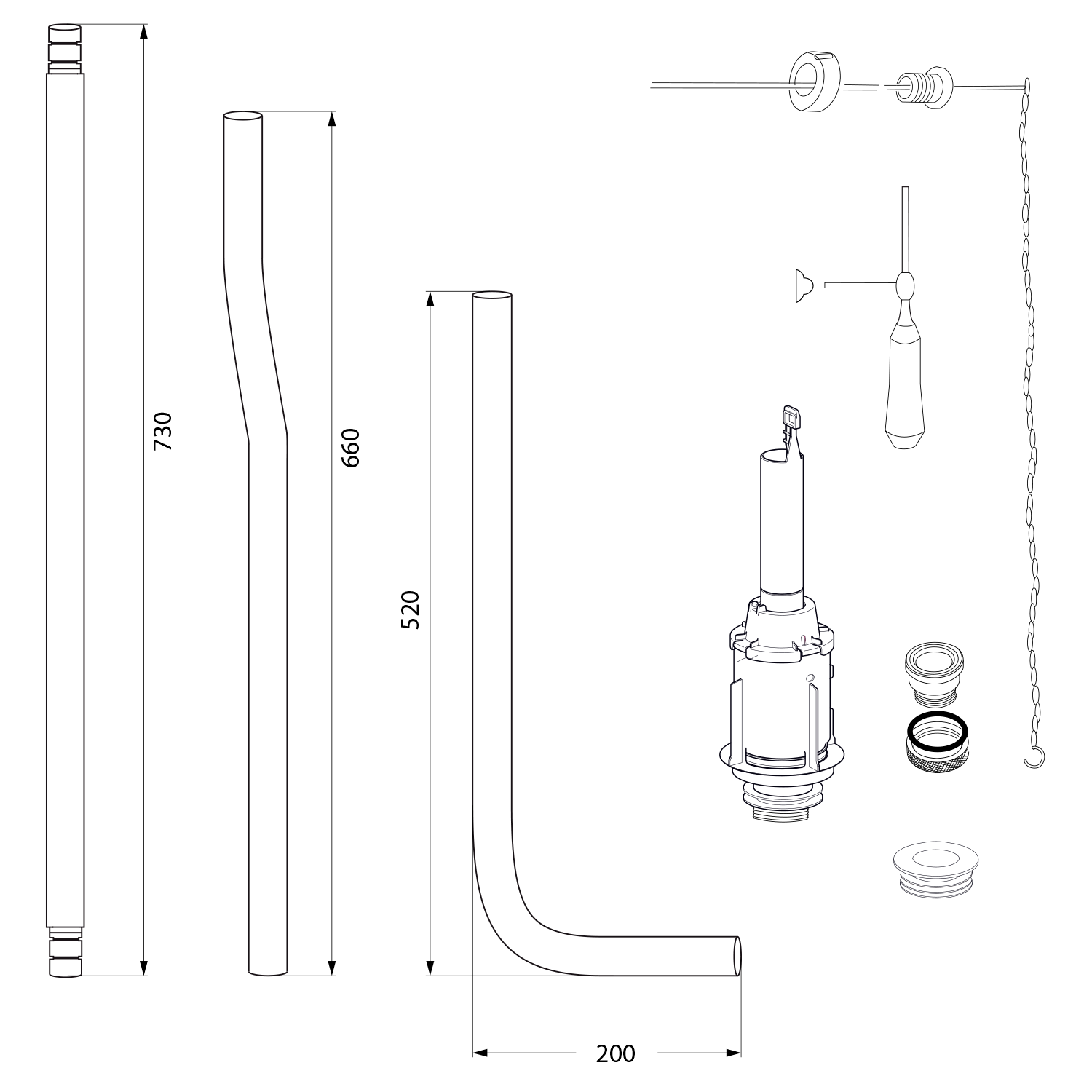 • Splachovací mechanismus s řetízkem včetně trubky k nádržce
