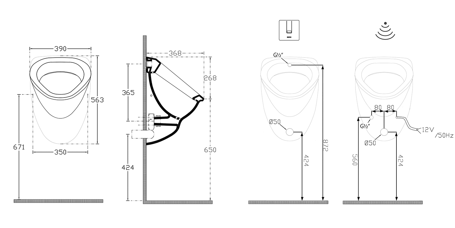 • Při instalaci s automatickým splachovačem PS002 je nutné instalovat i napájecí zdroj (PS05T nebo PS10T).