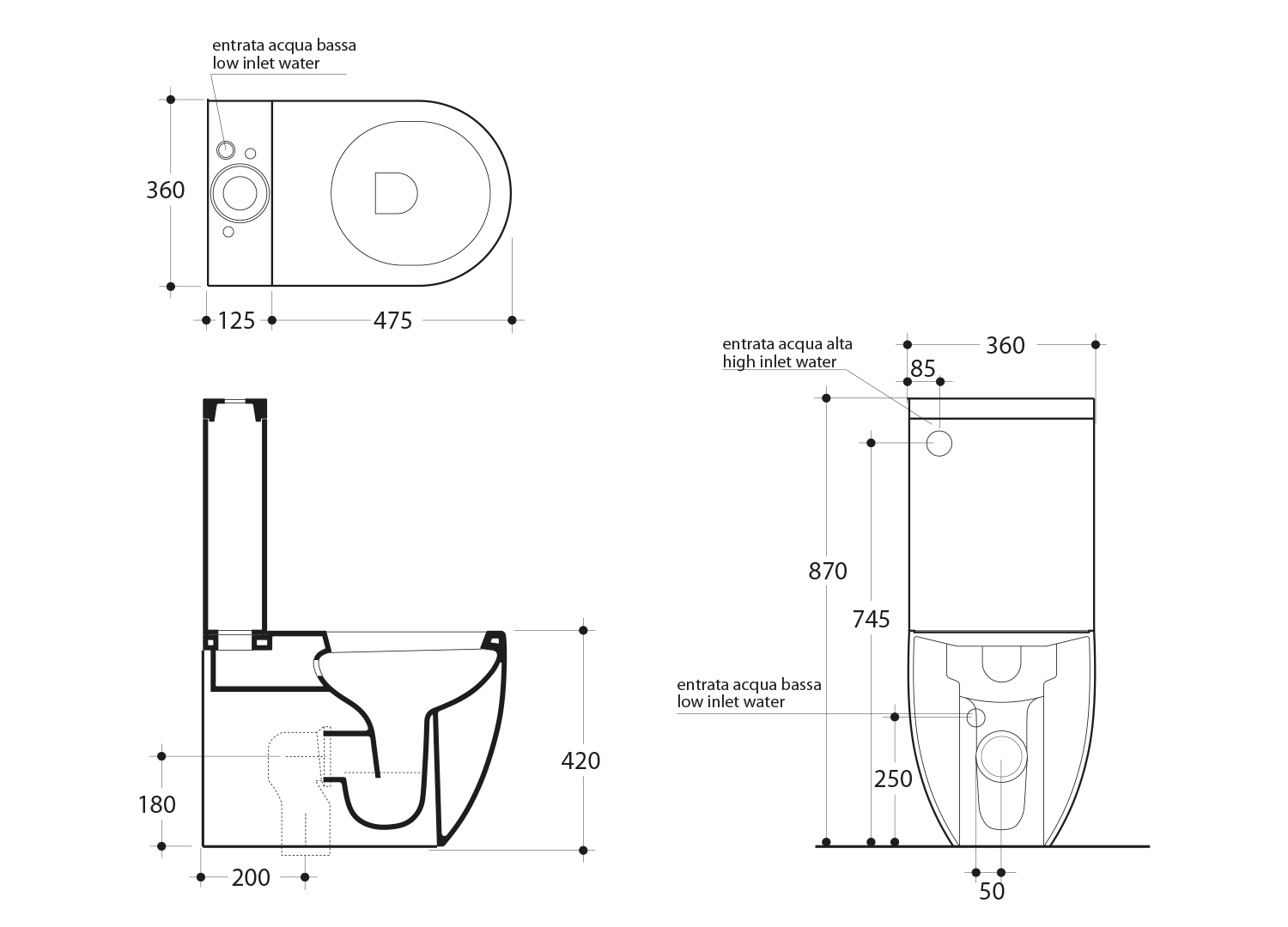 Splachovací souprava s DUAL tlačítkem, boční napouštění 3/8