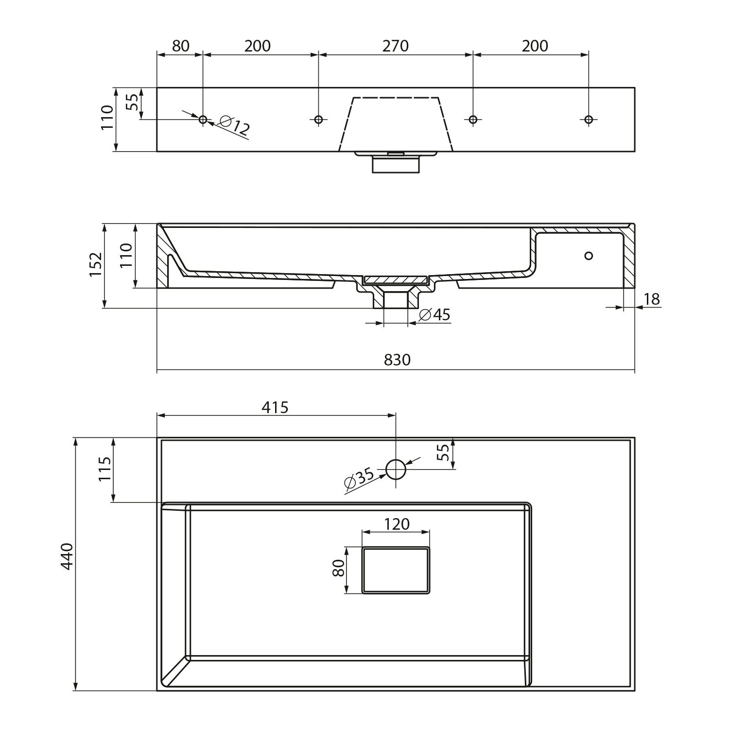 ODETTA umyvadlová skříňka 82x50x43,5cm, borovice rustik DT085-1616