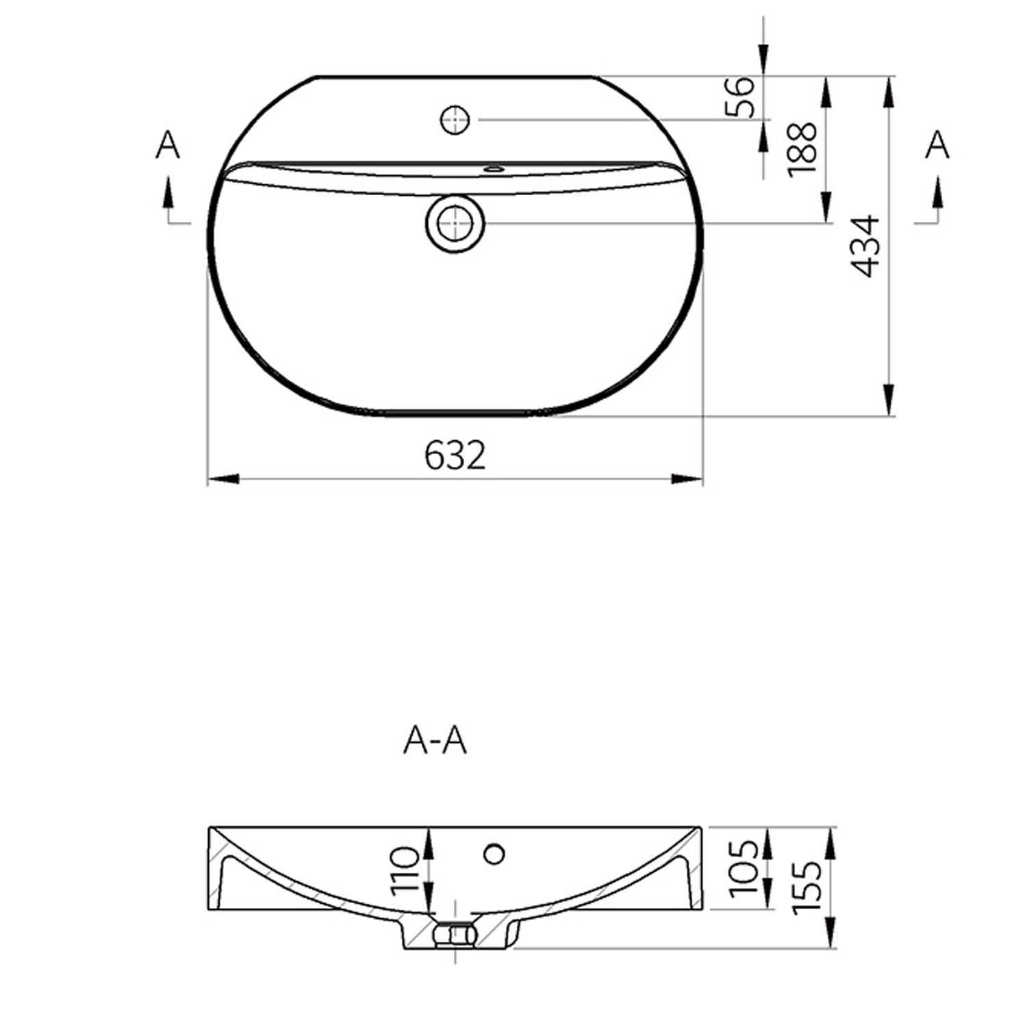 THIN umyvadlo na desku, Rockstone, 60x40 cm, bílá mat WN213