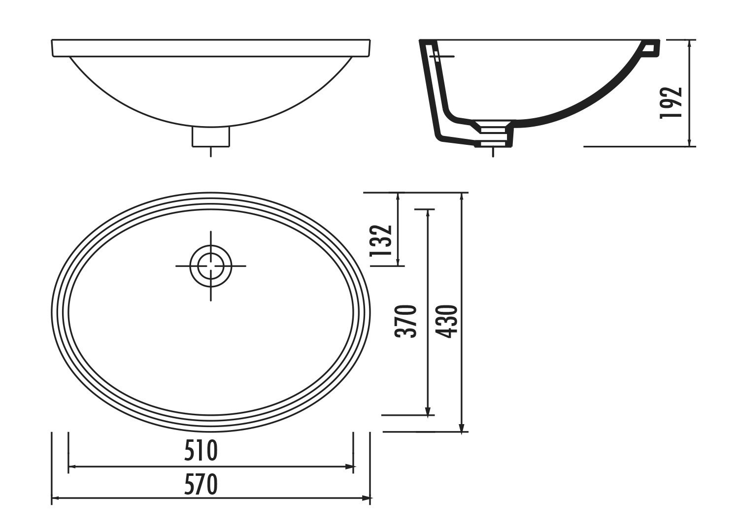 Keramické umyvadlo pod desku, 48,5x38cm, bílá TP211