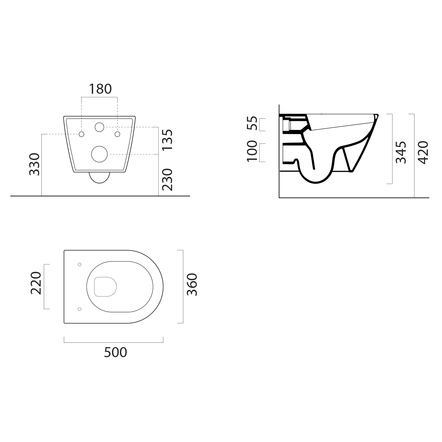 PURA závěsná WC mísa, Swirlflush, 36x55cm, černá dual-mat 881526
