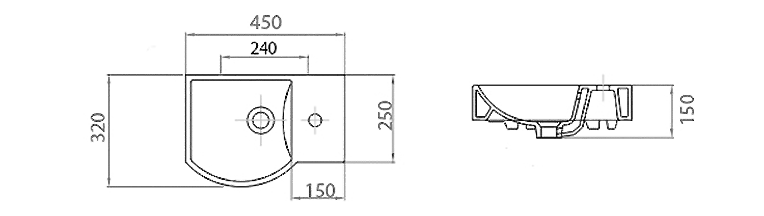 YUMO keramické umývátko rohové 45x28cm, bílá 3045