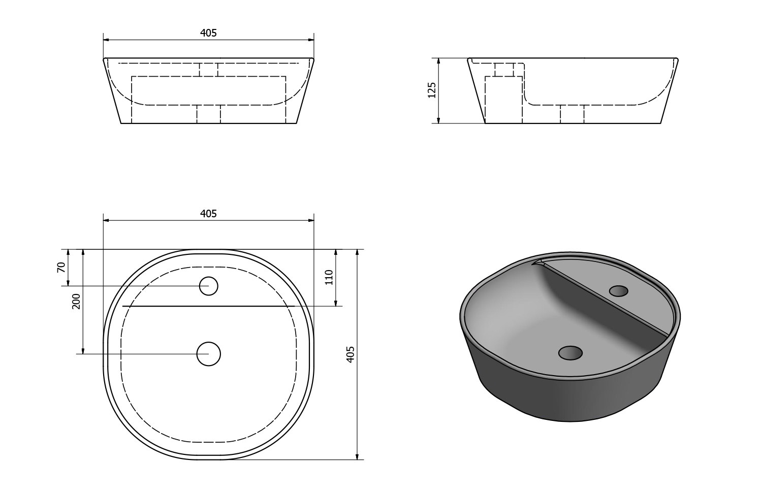 MOLVENO keramické umyvadlo na desku, 39,5x39,5 cm, bílá AR453