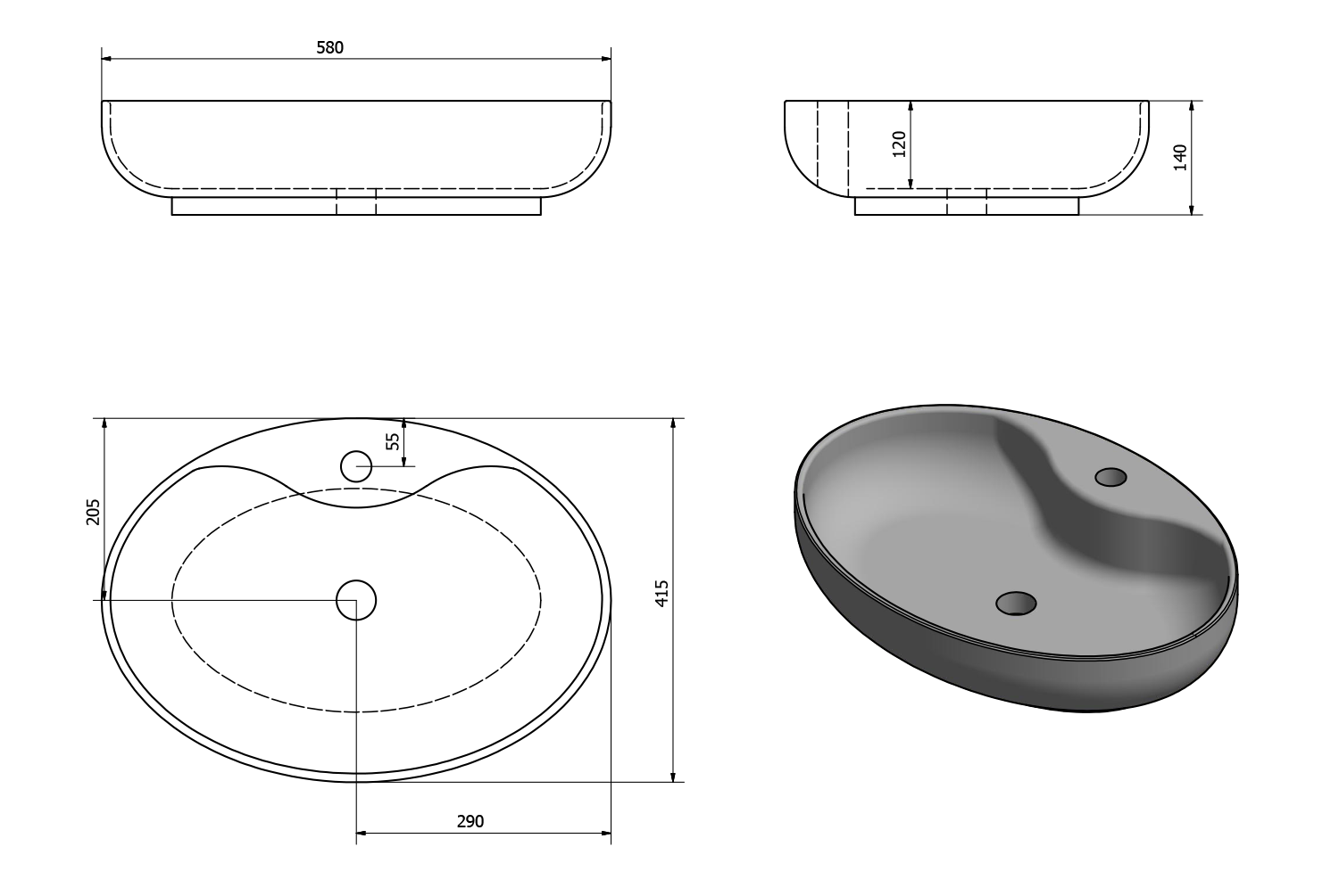 RING keramické umyvadlo na desku 65x40cm, bílá 028501