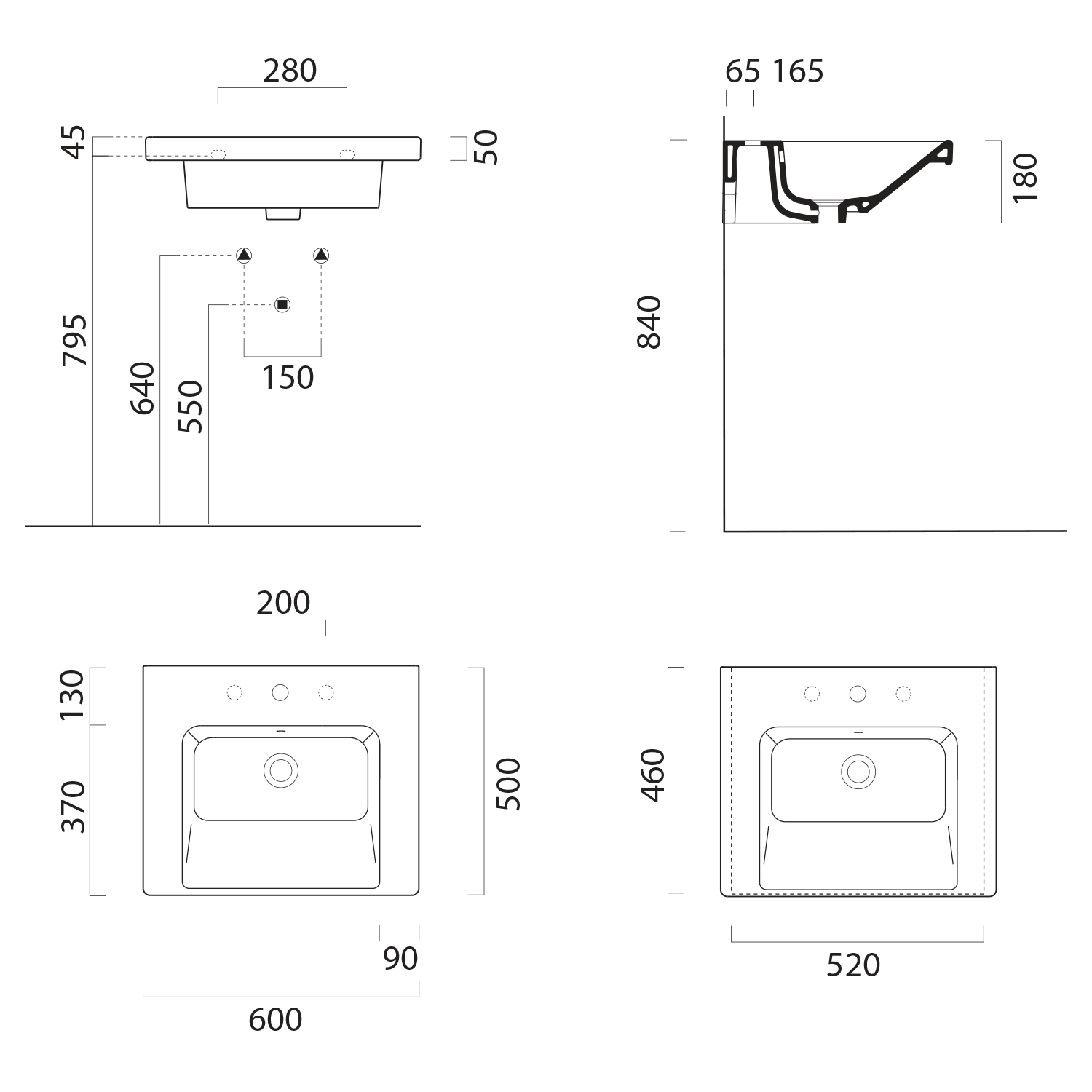 NUBES/NORM konstrukce pod umyvadlo 60x50cm, černá mat MSN6028