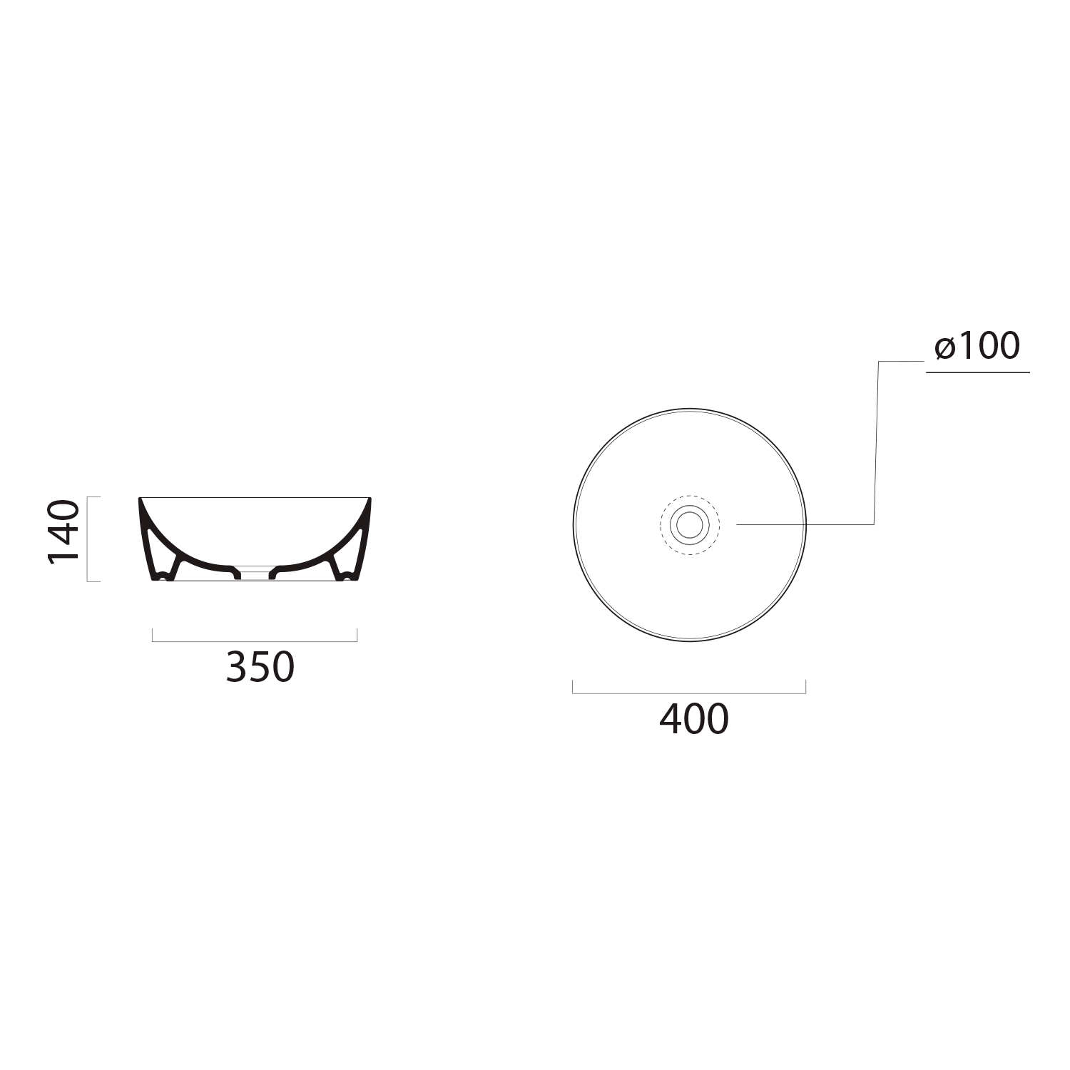 KUBE X keramické umyvadlo na desku, průměr 45cm, creta mat 942708