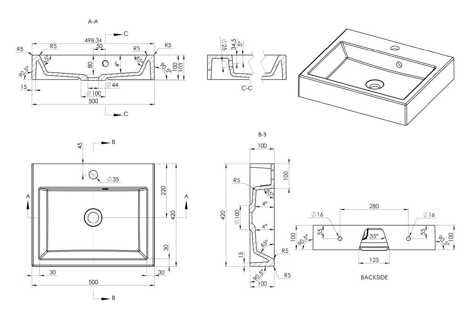 CENTO keramické umyvadlo 50x45cm, bílá 353001