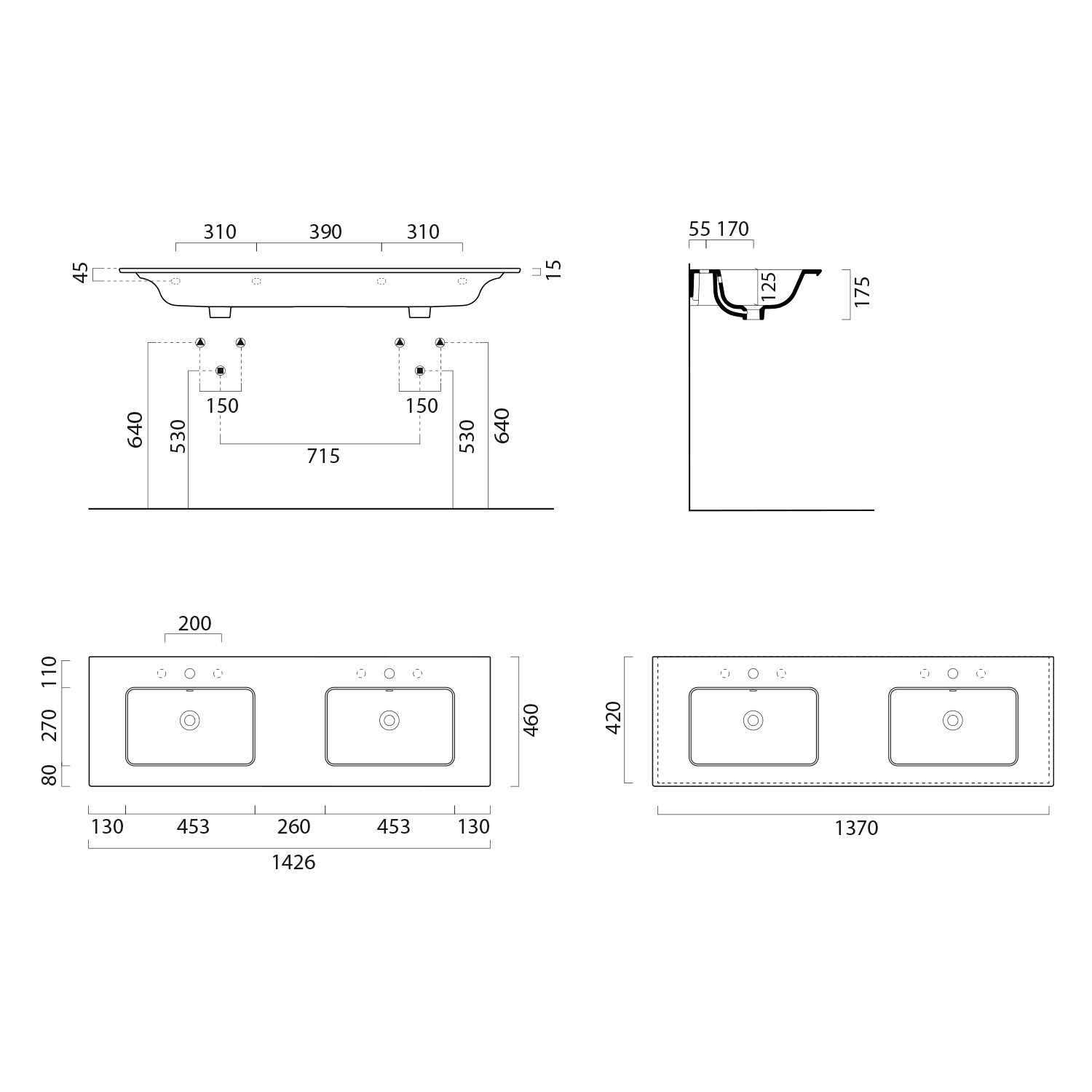 EZARA dvojumyvadlová skříňka 140x55x46cm, bílá lesk EZ141-3030