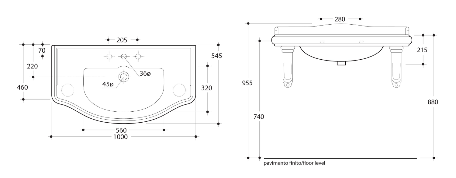 RETRO keramické umyvadlo 100x54,5cm, 3 otvory, bílá 105001-3