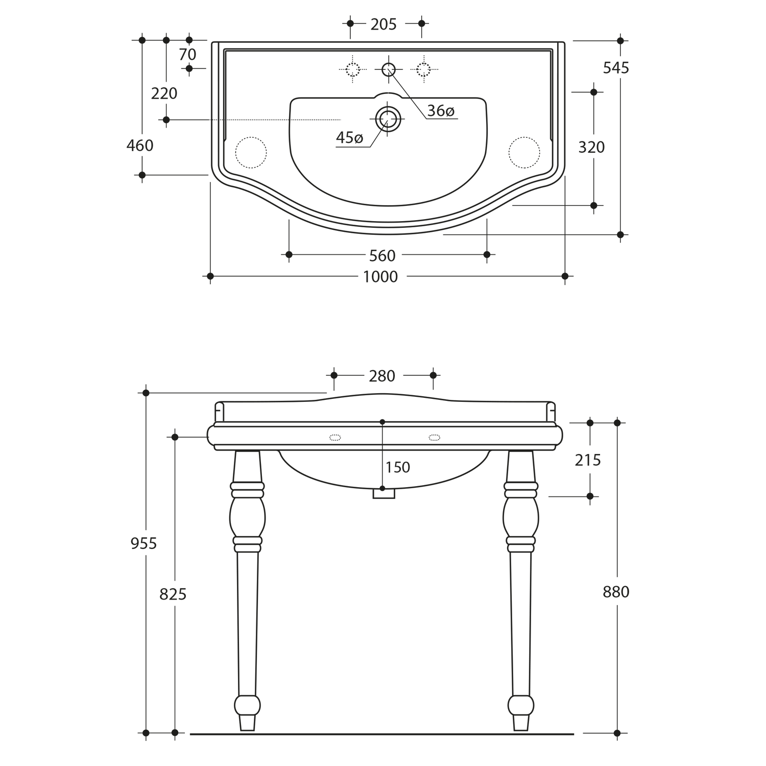 RETRO keramické umyvadlo 100x54,5cm, 3 otvory, bílá 105001-3