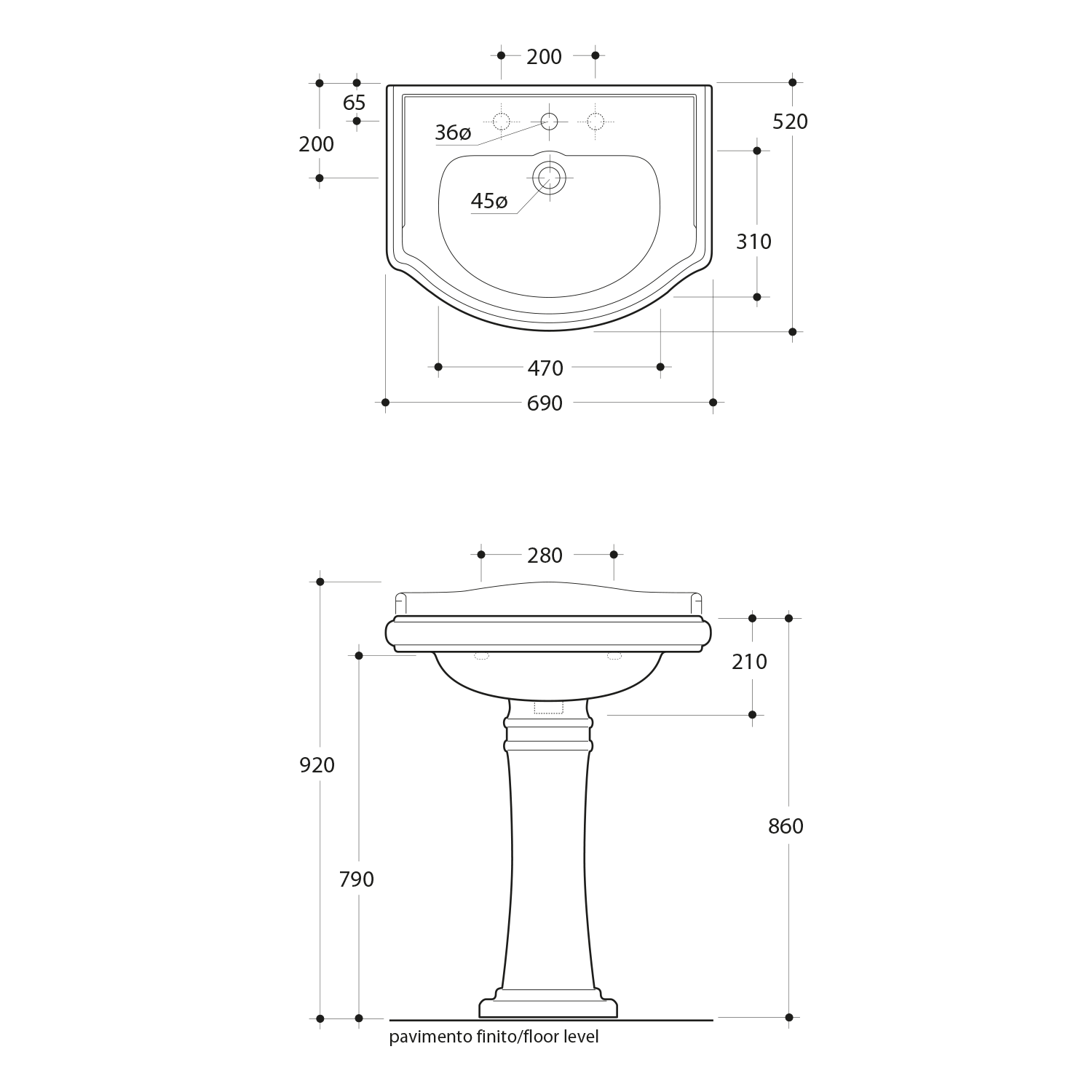 RETRO keramické umyvadlo 56x46,5cm, černá mat 104531