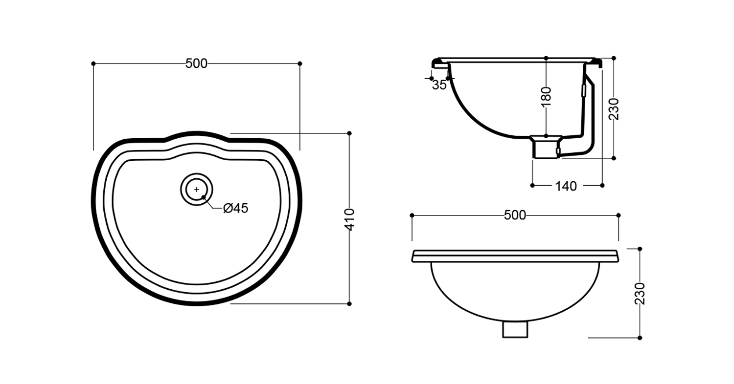 RETRO keramické umyvadlo zápustné, 62x45,5cm, bílá 103001