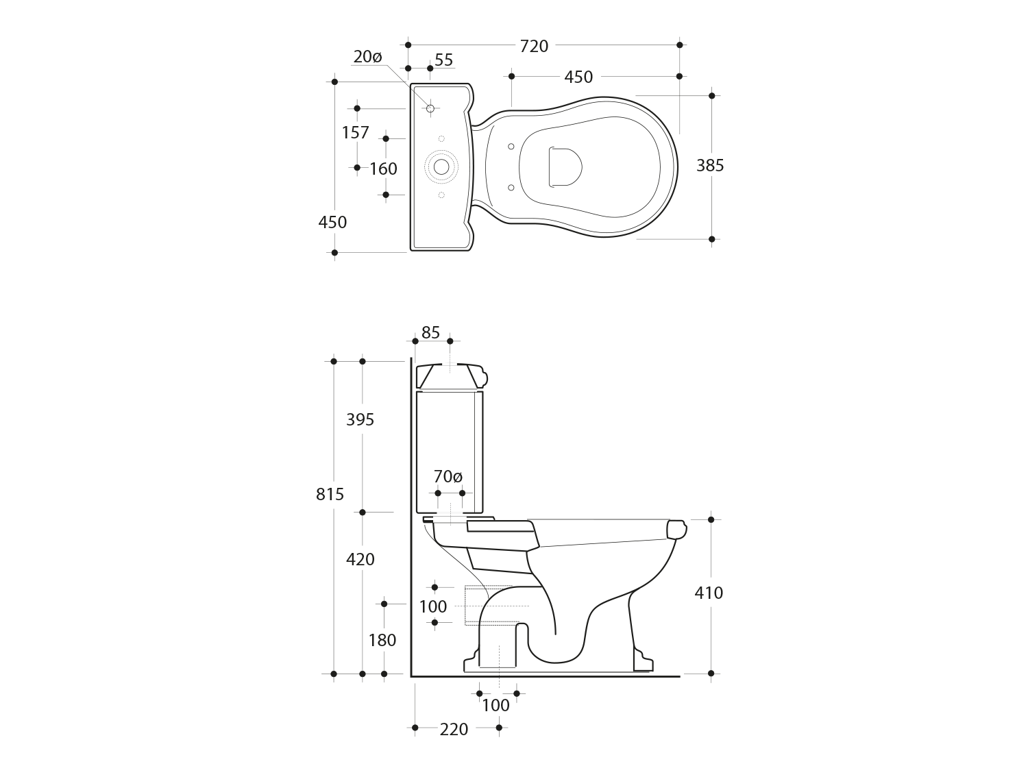 RETRO WC kombi mísa 38,5x72cm, spodní odpad, bílá 101201