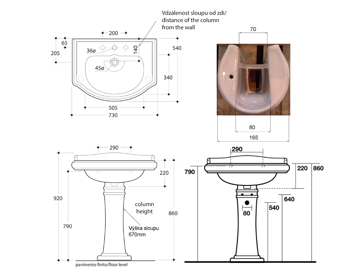 RETRO keramické umyvadlo 73x54cm, 3 otvory, černá mat 104731-3