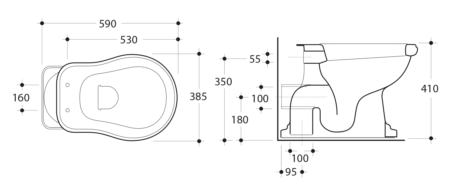 RETRO WC mísa stojící, 38,5x59cm, spodní odpad, černá mat 101031