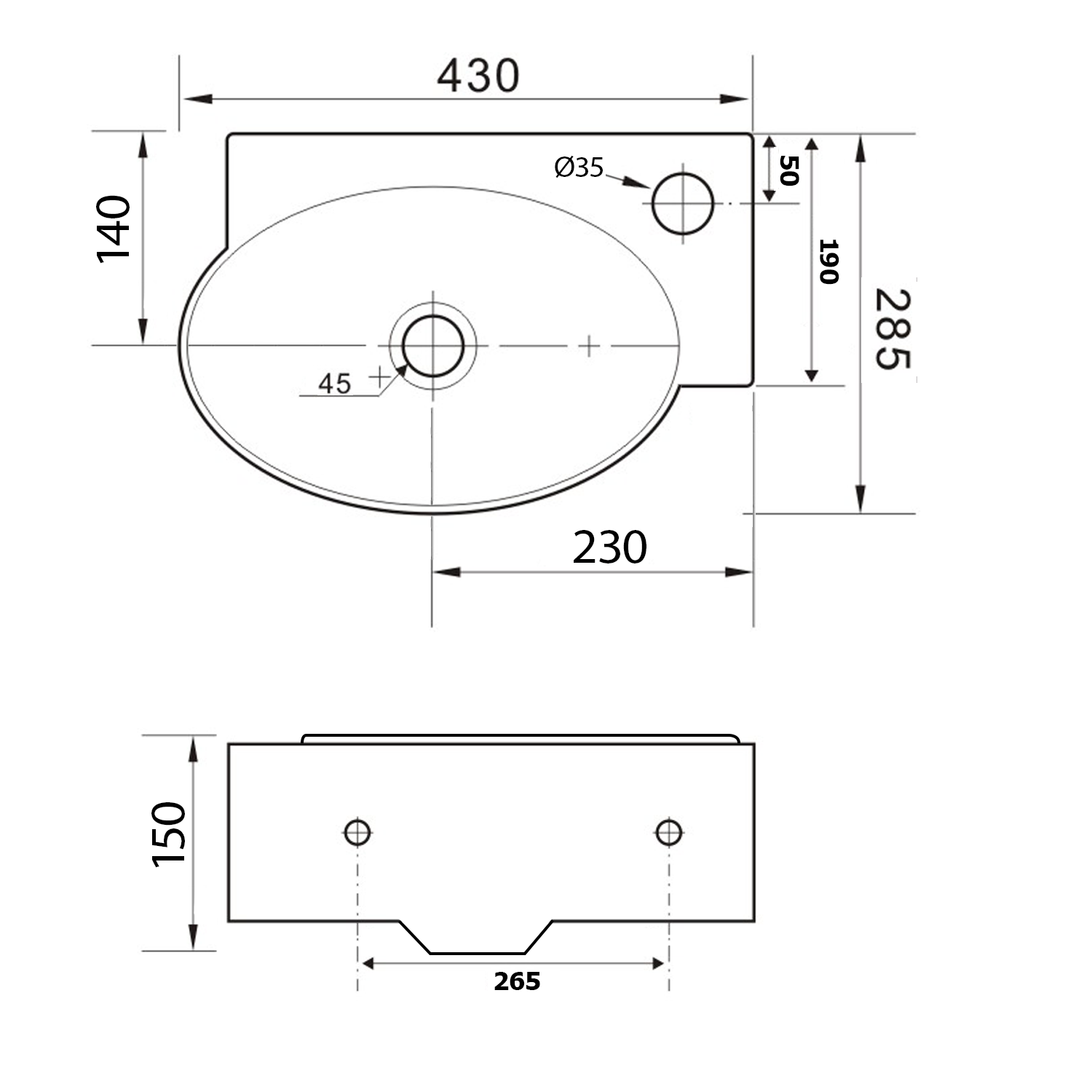YUMO keramické umývátko rohové 45x28cm, bílá 3045