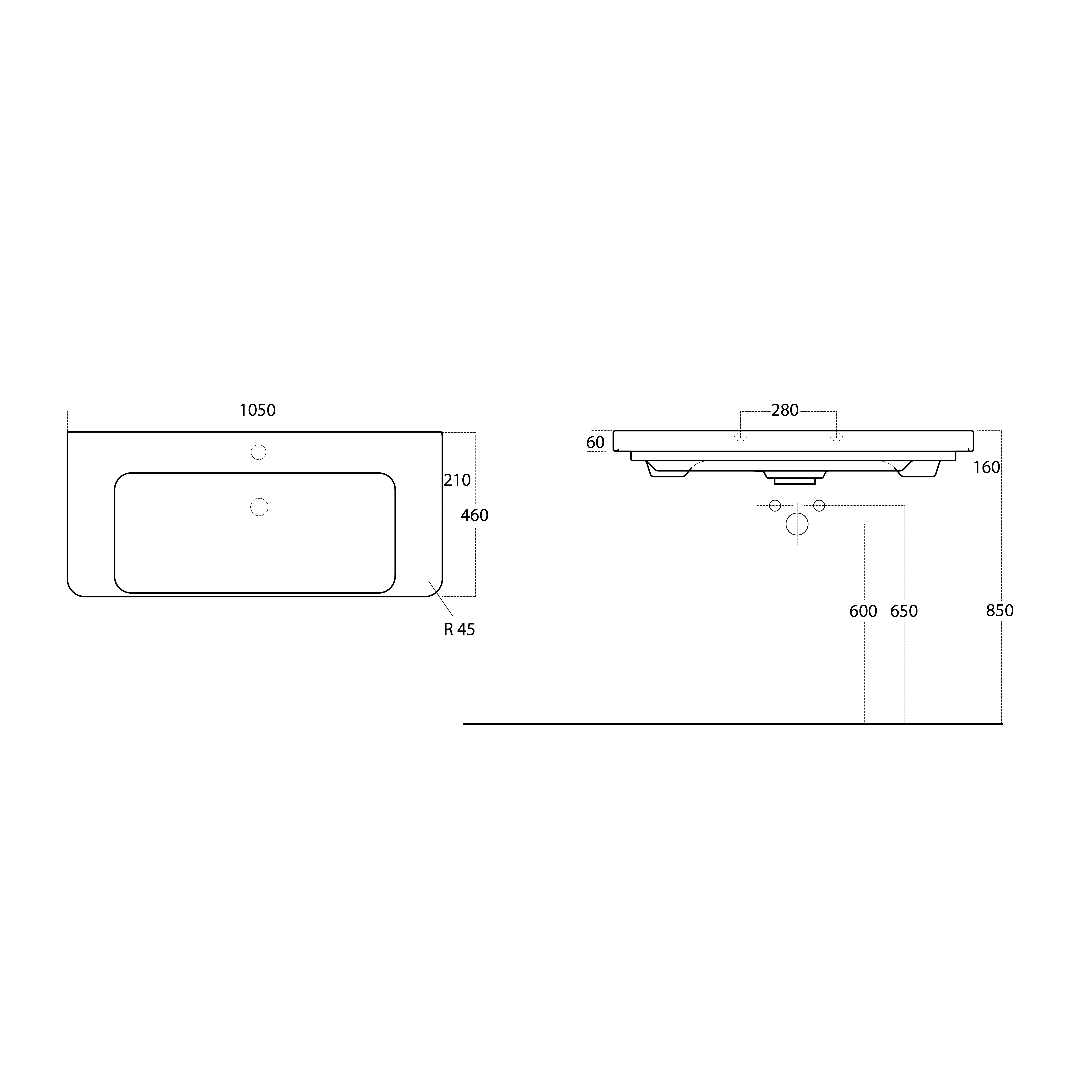 THEIA umyvadlová skříňka 101,4x43,5x44,2cm, 2xzásuvka, bílá TH105-3030