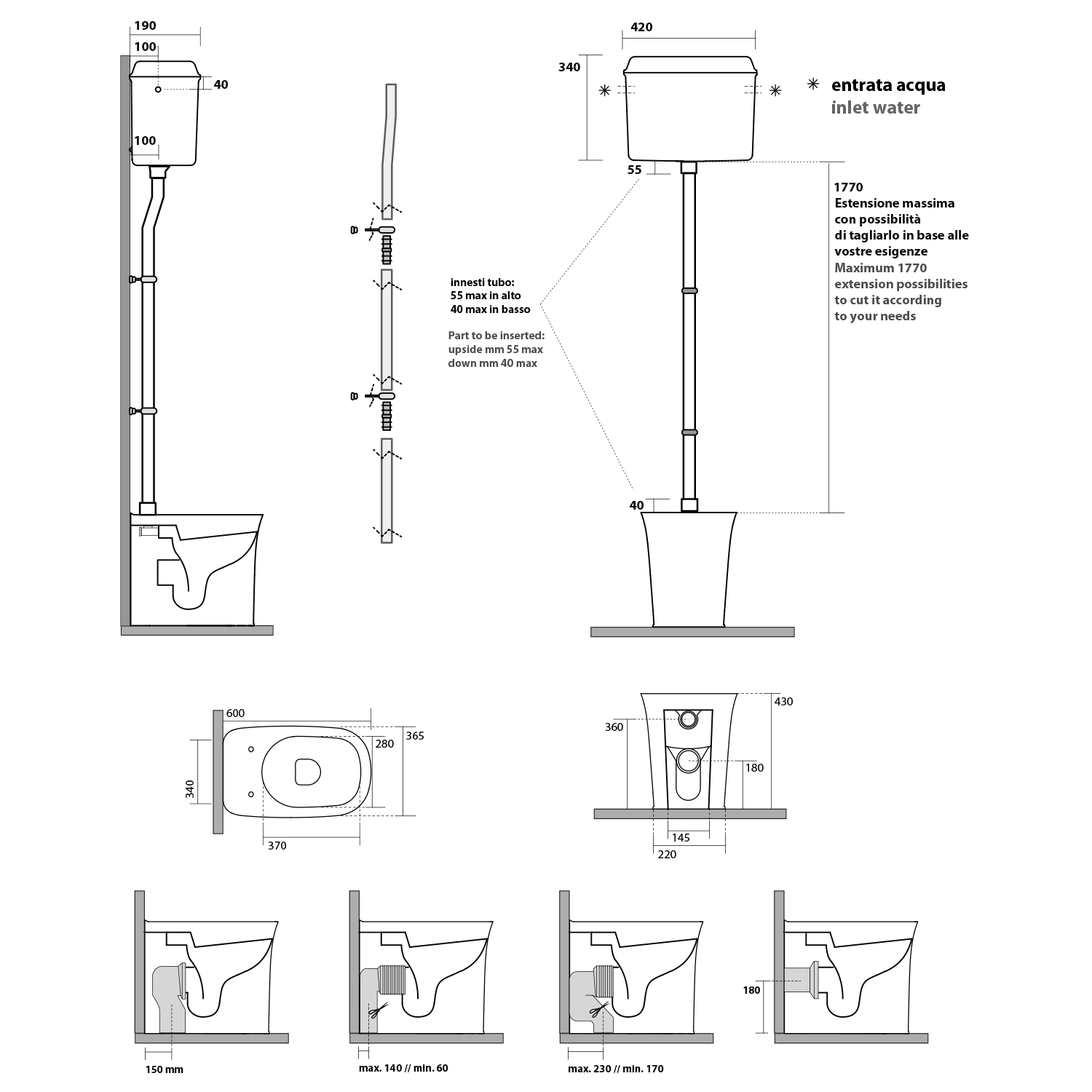 THE NEW YORKER WC mísa stojící pro vysokou nádržku, 36,5x60cm, spodní/zadní odpad, bílá 561801-1