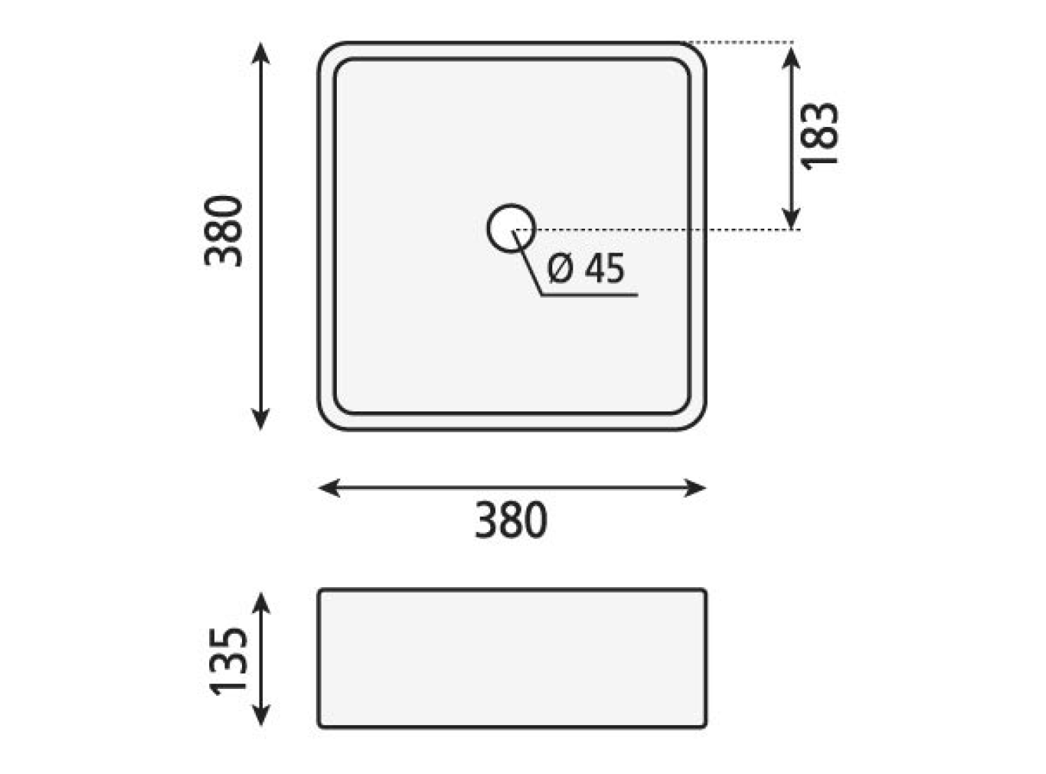 CENTO keramické umyvadlo na desku, 45x45cm, bílá 354401