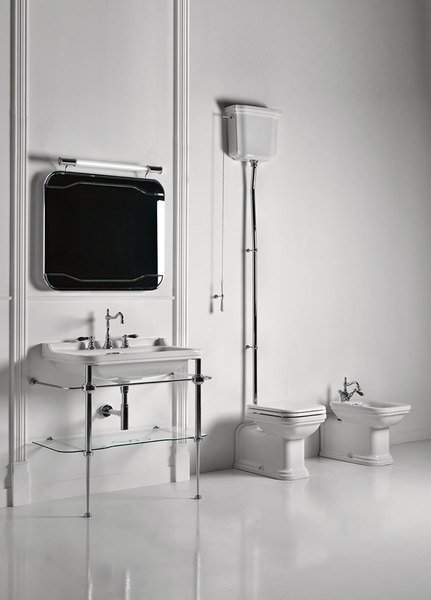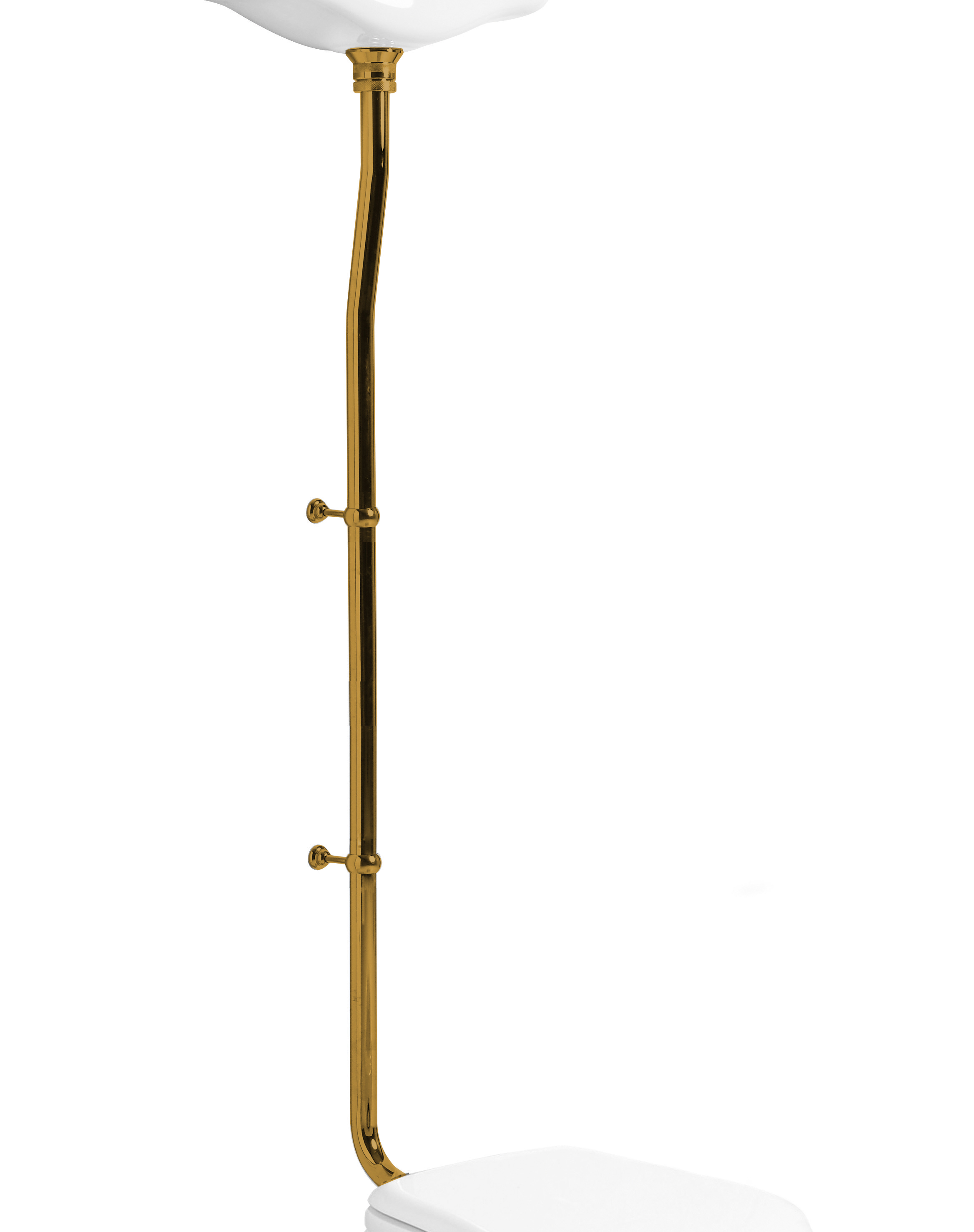 Splachovací trubka vnější mezi WC mísu a vysokou splachovací nádržku. Horní upevňovací matka k trubce nádržky je součástí balení splachovacího mechanismu.