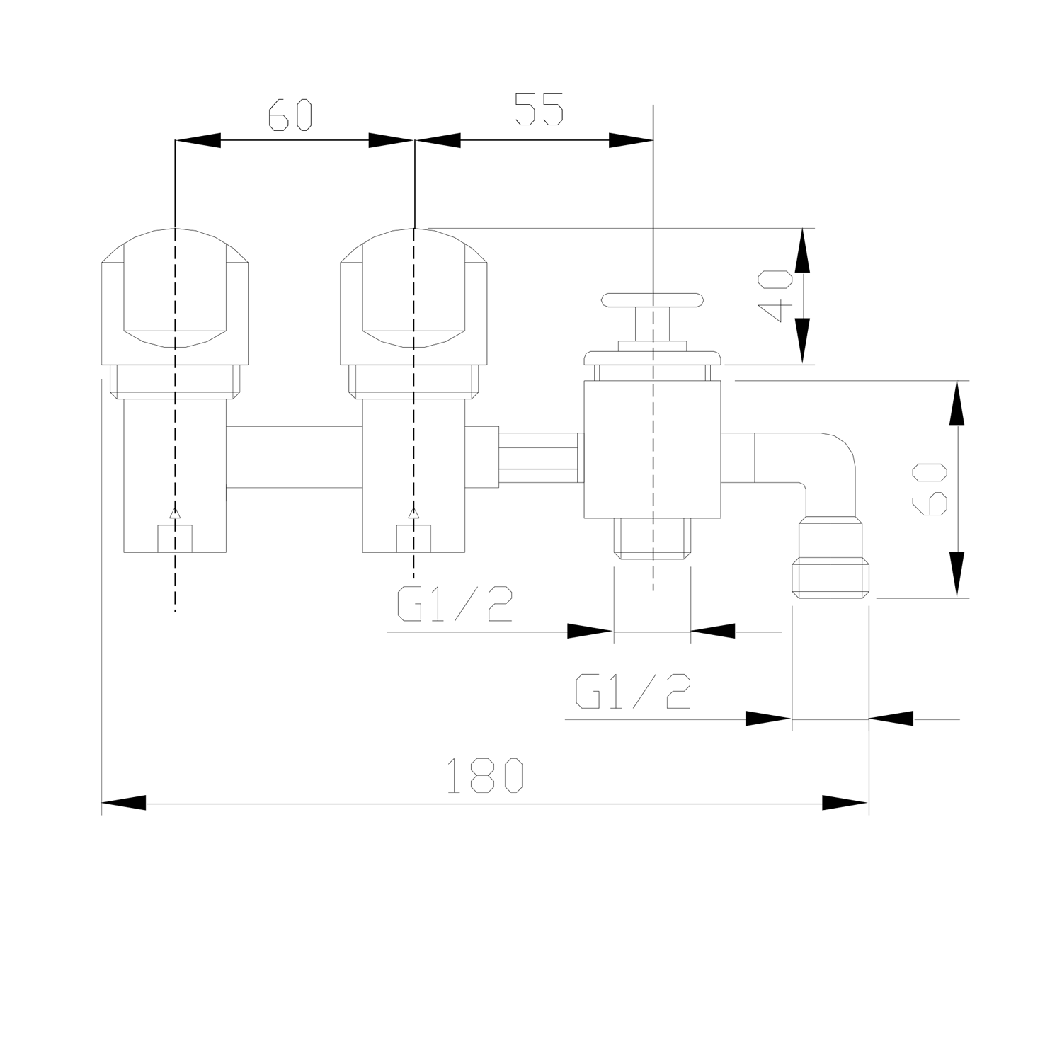 Sprchová průchodka na okraj vany včetně hadice  F1/2