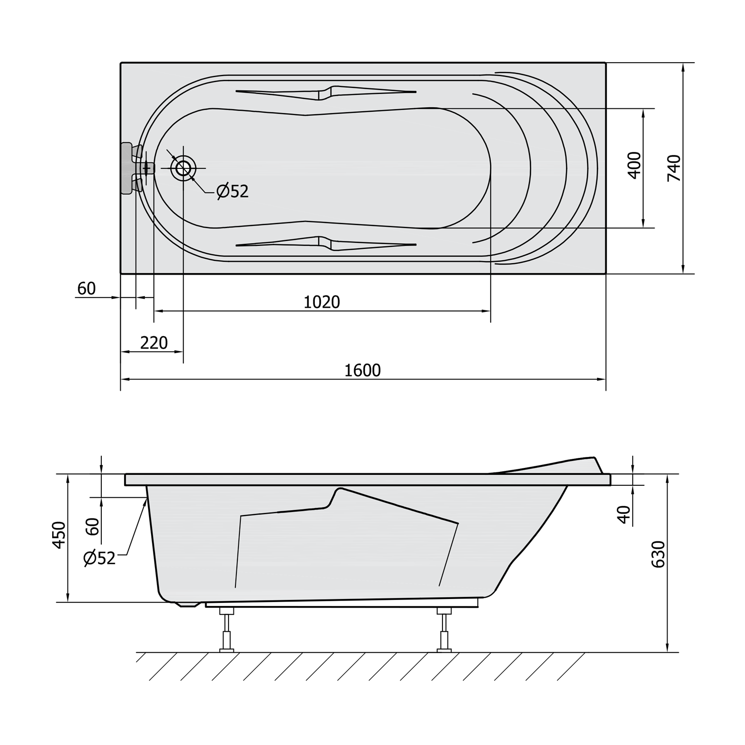 Podstavec k akrylátové vaně Polysan, 51,5cm, pár PO60-60